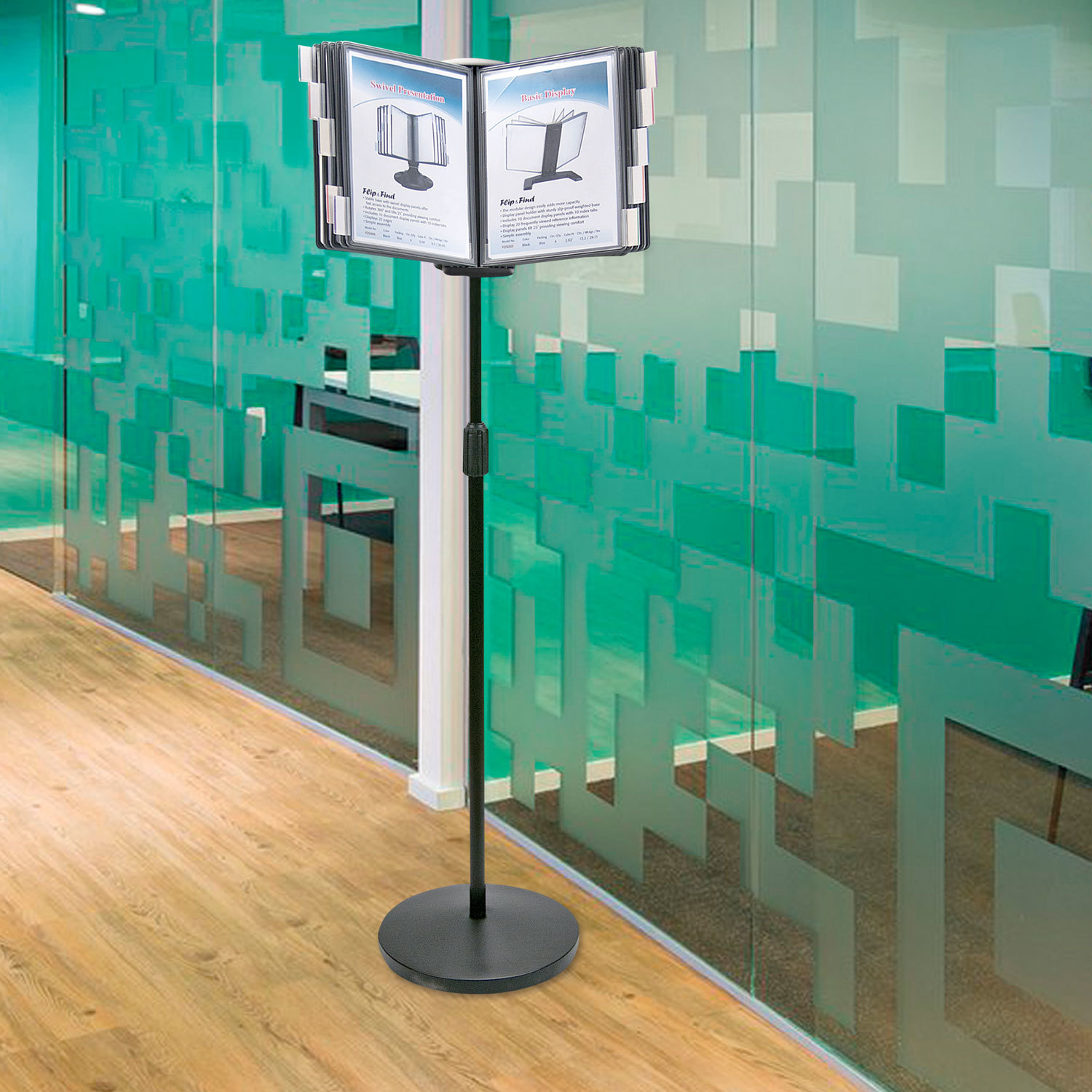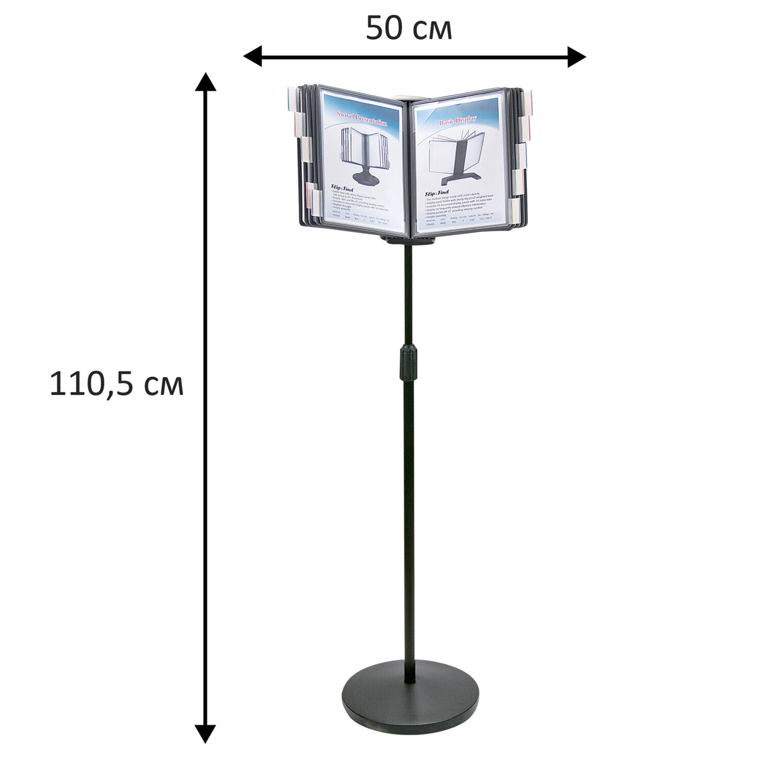 10 двухсторонних панелей серого цвета позволяют разместить одновременно до 20 листов формата А4. Панели с листовками возможно разместить как вертикально, так и горизонтально. Прочные и гибкие литые рамки панелей изготовлены из полипропилена, пригодного для повторной переработки и дальнейшего использования. Демопанели оснащены съемными ярлычками-табуляторами для маркировки и удобного поиска нужной информации. Угол наклона дисплейного модуля регулируется. Карман демопанели из прочного прозрачного материала надежно защитит документы от внешних воздействий и делает процесс чтения более комфортным. Металлическое основание имеет пластиковое покрытие для защиты от царапин. Стильный чёрный цвет металлического корпуса подойдёт для большинства современных интерьеров. Демосистема напольная на 10 панелей, с 10 серыми панелями А4, BRAUBERG, 235339