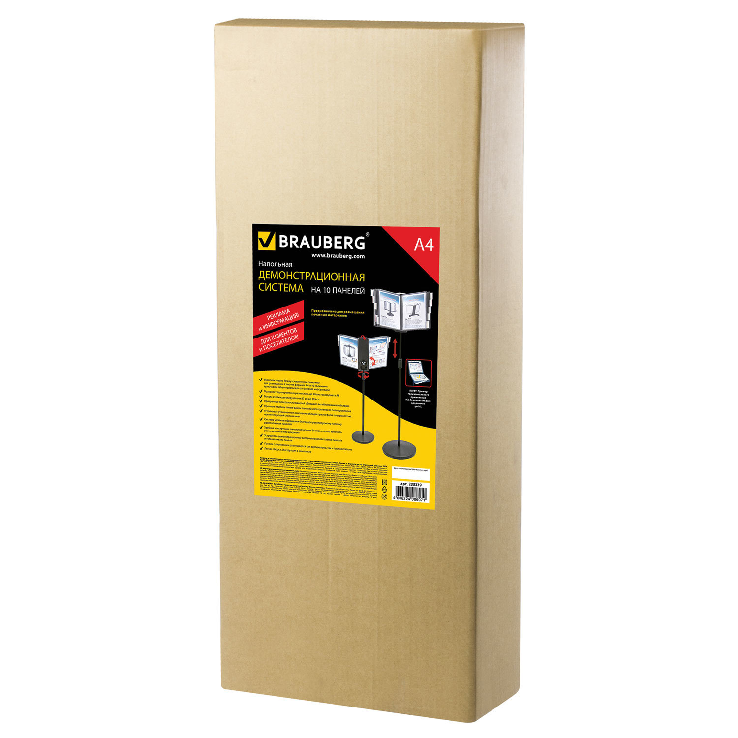 - Демосистема напольная на 10 панелей, с 10 серыми панелями А4, BRAUBERG, 235339
