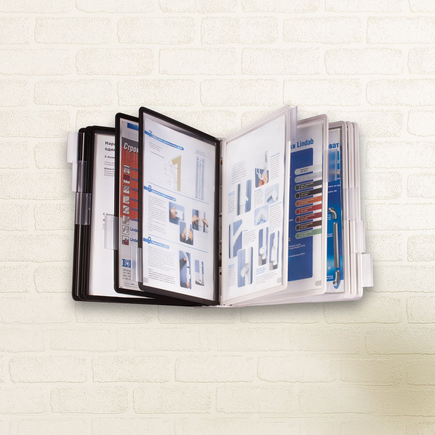 Настенная демонстрационная система для размещения информации о компании, о товарах, ценах на них и др. Демосистема настенная на 10 панелей, 5 черных и 5 серых панелей, DURABLE (Германия) "SHERPA", 5631-22