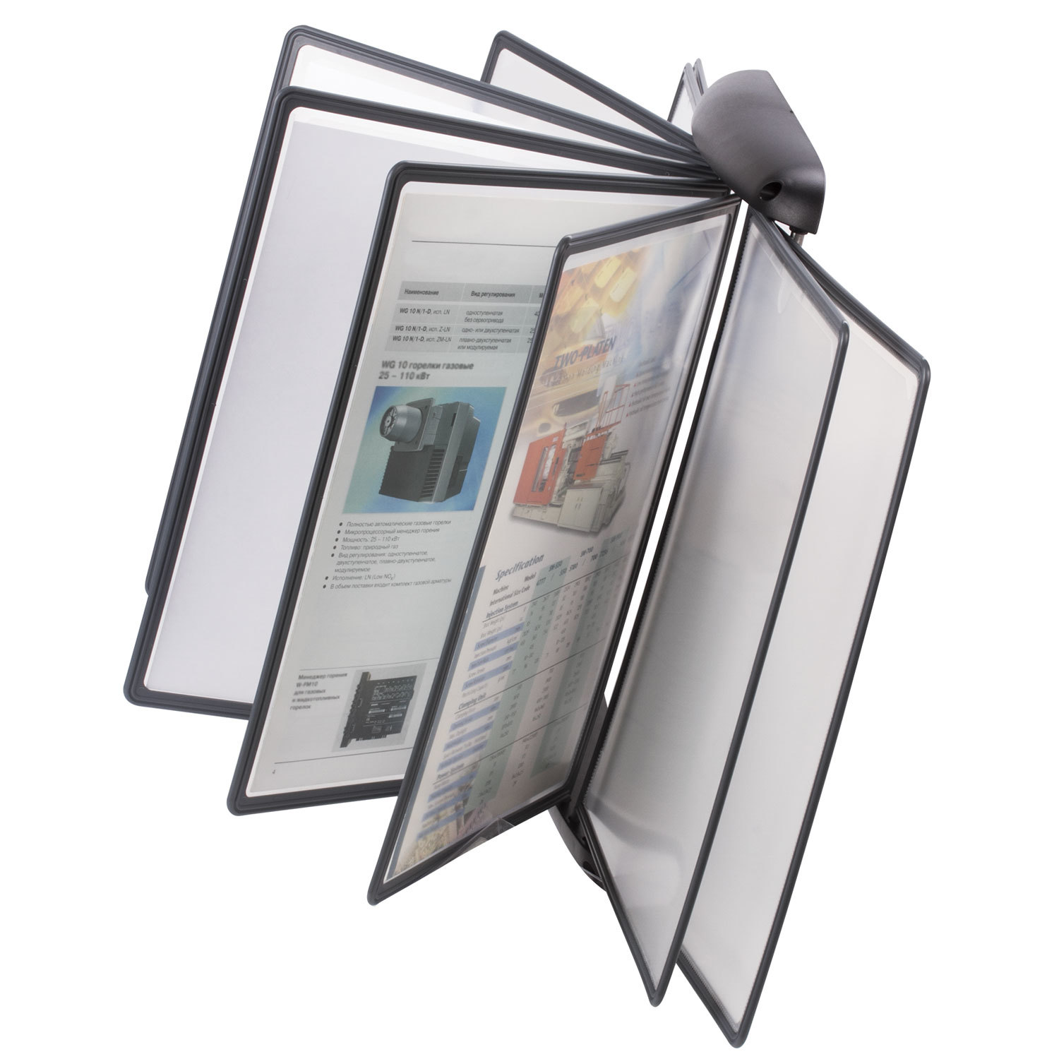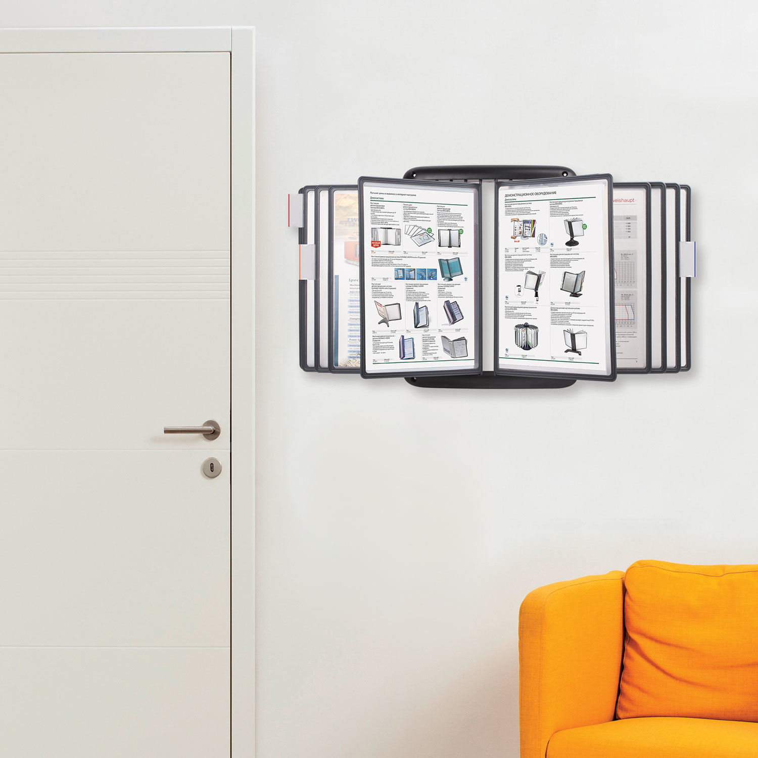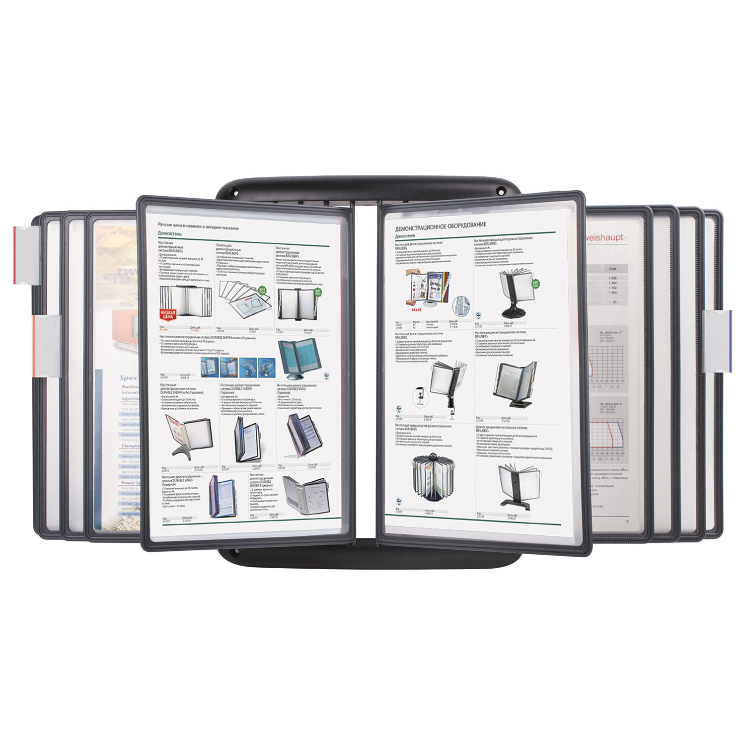 10 двухсторонних панелей позволяют разместить одновременно до 20 листов формата А4. Прочные и гибкие литые рамки панелей изготовлены из полипропилена, пригодного для повторной переработки и дальнейшего использования. Демопанели оснащены съемными ярлычками-табуляторами для маркировки и удобного поиска нужной информации. Карман демопанели из прочного прозрачного материала с антибликовым покрытием надежно защитит документы от внешних воздействий. Винты для крепления демосистемы к стене поставляются в комплекте. Демосистема настенная на 10 панелей, с 10 серыми панелями А4, BRAUBERG, 231240