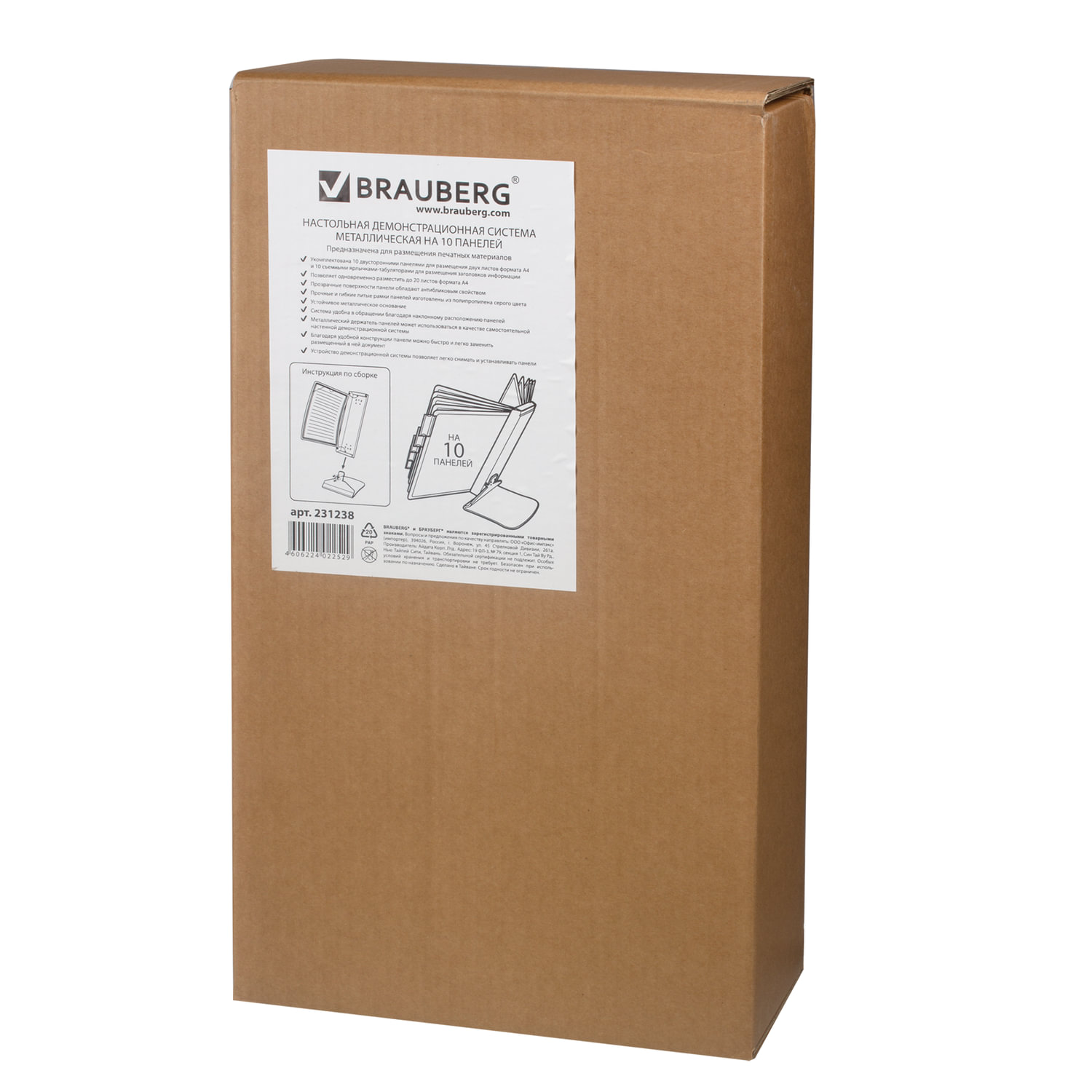 - Демосистема настольная металлическая на 10 панелей, с 10 серыми панелями А4, BRAUBERG, 231238