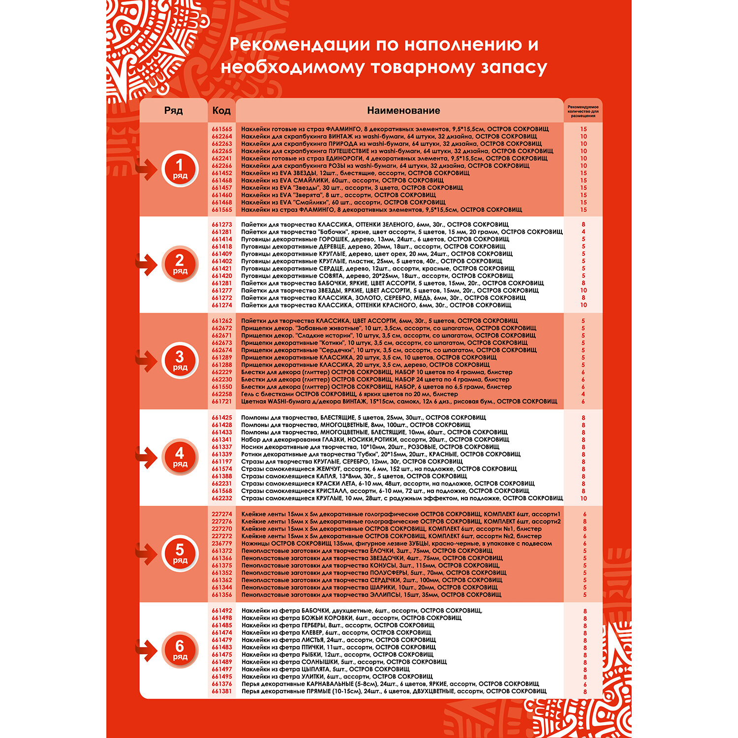 Помимо прочего в комплект входит рекомендация по размещению продукции бренда - грамотная планограмма уже составлена специалистами группы компаний t;Самсонt;. Стойка для размещения товара напольная ОСТРОВ СОКРОВИЩ с топпером, 200х57 см, 72 крючка, 6 вращающихся рядов, 504262