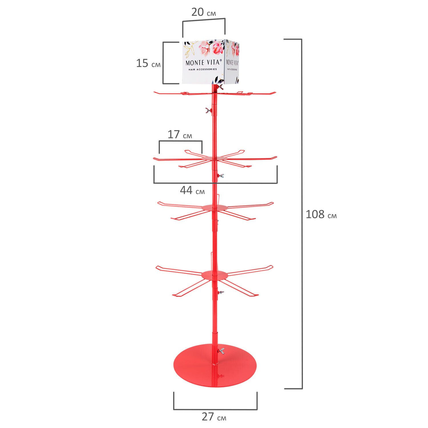 - Стойка-вертушка настольная MONTE VITA, 108х44см, 4 ряда, 22 крючка, 507506