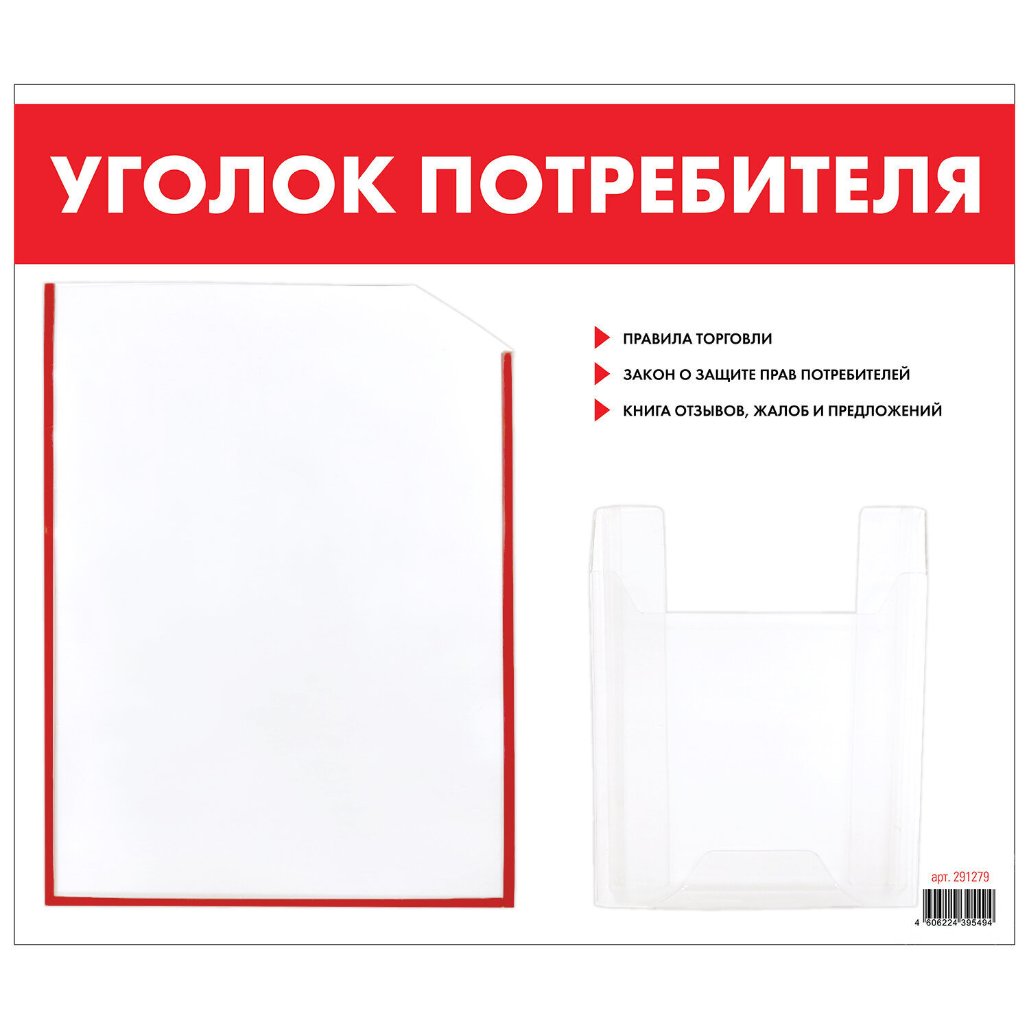 - Доска-стенд "Уголок потребителя", 50х43 см, 2 кармана (плоский А4 и объемный А5), STAFF, 271279, 291279