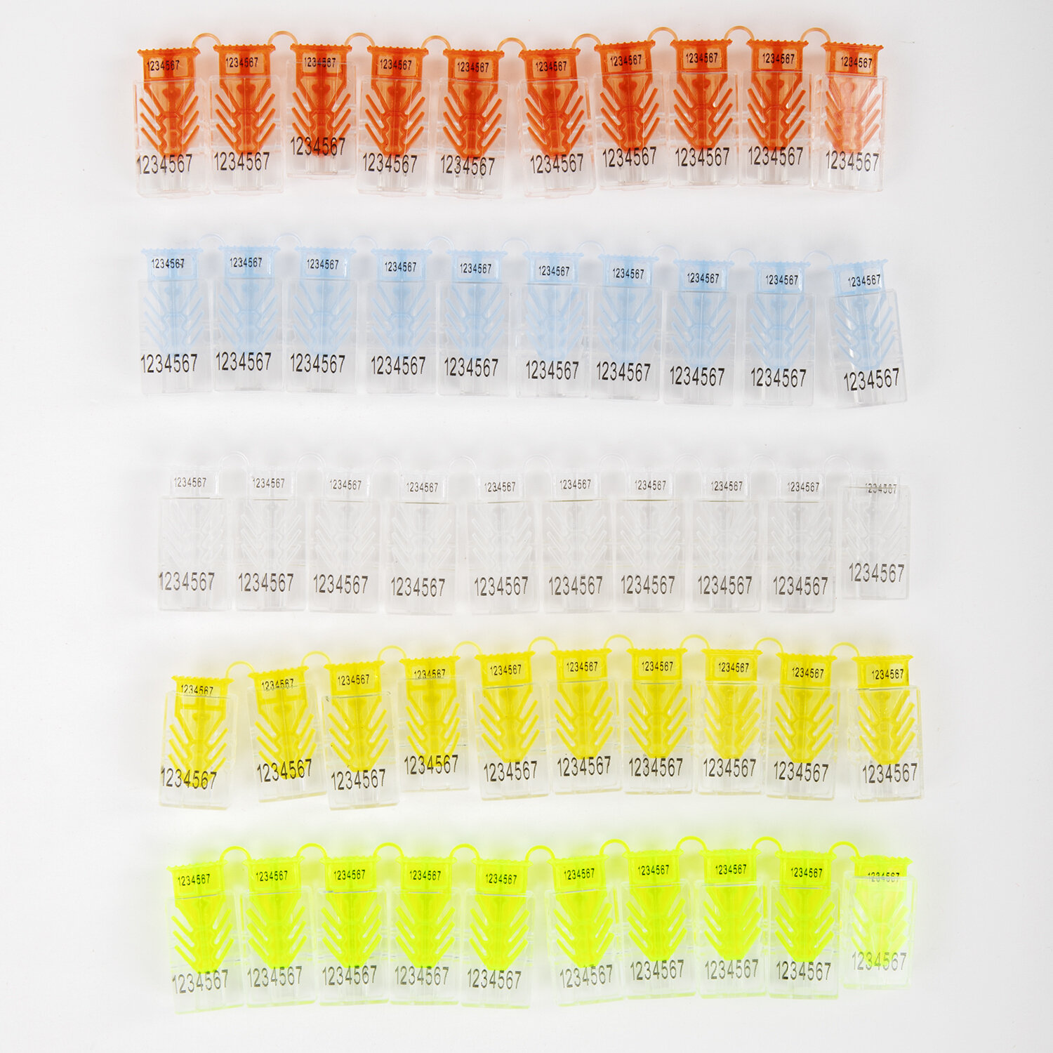 Поставляется в нескольких вариантах цвета (без возможности выбора): синий, красный, зеленый, желтый, прозрачный. Пломбы стиропластовые номерные, "Гарпун", самофиксирующиеся, комплект 100 шт. (проволока 600811, 600280), 602474