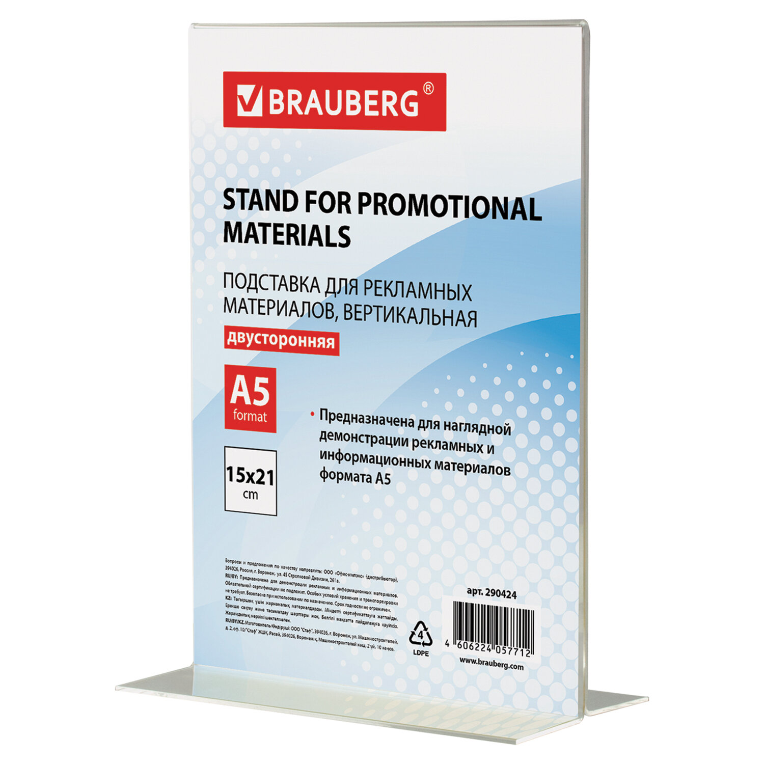 - Подставка настольная для рекламных материалов МАЛОГО ФОРМАТА (150х210 мм), А5, двусторонняя, вертикальная, BRAUBERG, 290424