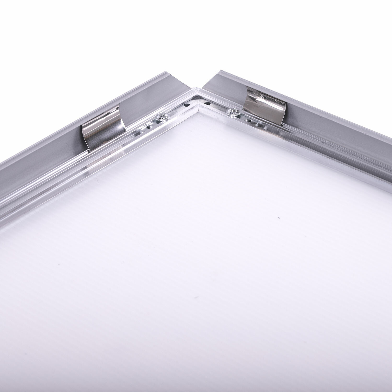 Профиль рамки изготовлен из анодированного алюминия. Изменяемое расположение – книжное или альбомное. Благодаря прозрачному антибликовому покрытию документы отчётливо видны посетителю, не мнутся и не загрязняются в течение всего эксплуатационного периода. Рамка крепится к стене через специальные отверстия при помощи дюбелей и саморезов. Элементы крепления входят в комплект. Максимальная высота вставляемого листа – 841 мм, максимальная ширина вставляемого листа – 594 мм. Цвет рамки – матовое серебро. Ширина багета – 2,5 см. Рамка настенная с "клик"-профилем A1 (594х841 мм) алюминиевый профиль, BRAUBERG "Extra", 238223