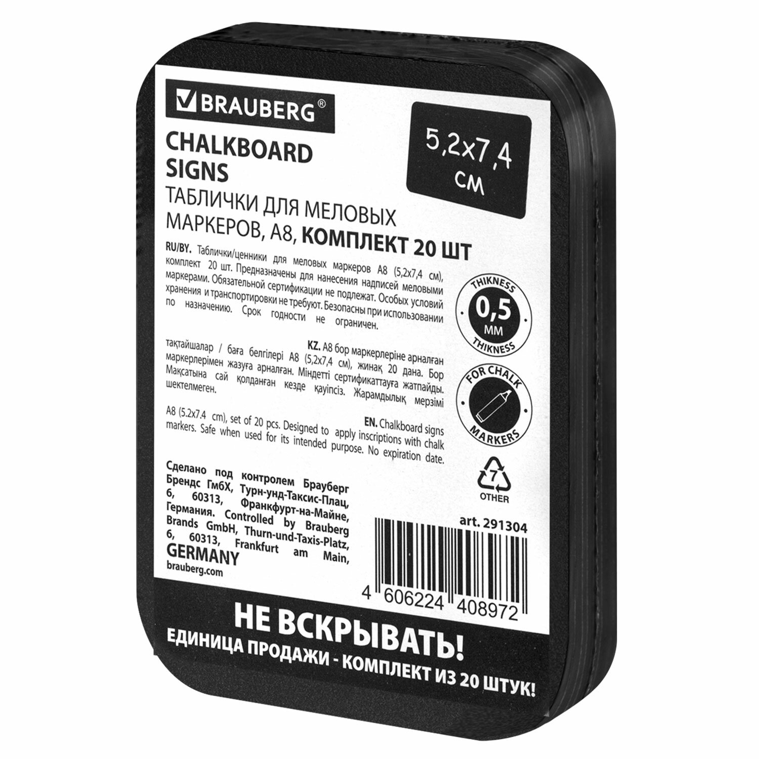 - Табличка меловая A8 (5,2x7,4 см), КОМПЛЕКТ 20 штук, пластиковая, 0,5 мм, ЧЕРНАЯ, BRAUBERG, 291304