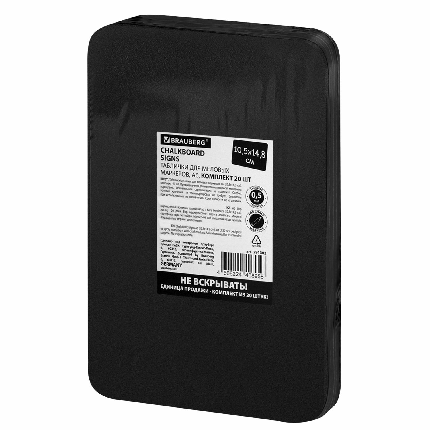 - Табличка меловая / ценник А6 (10,5x14,8 см), 20 штук, пластиковая, 0,5 мм, ЧЕРНАЯ, BRAUBERG, 291302