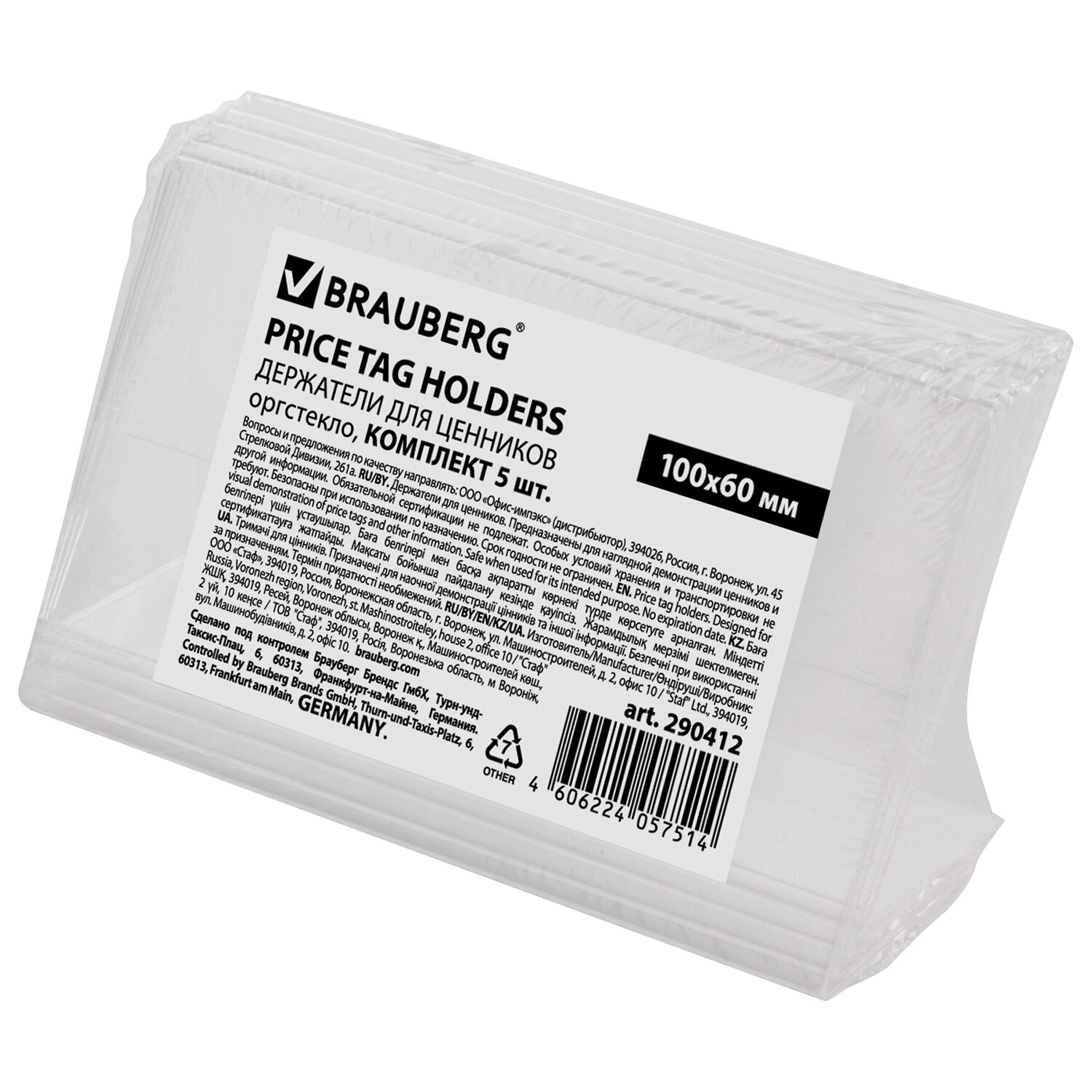 - Держатели для ценников, 100х60 мм, КОМПЛЕКТ 5 шт., оргстекло, BRAUBERG, 290412
