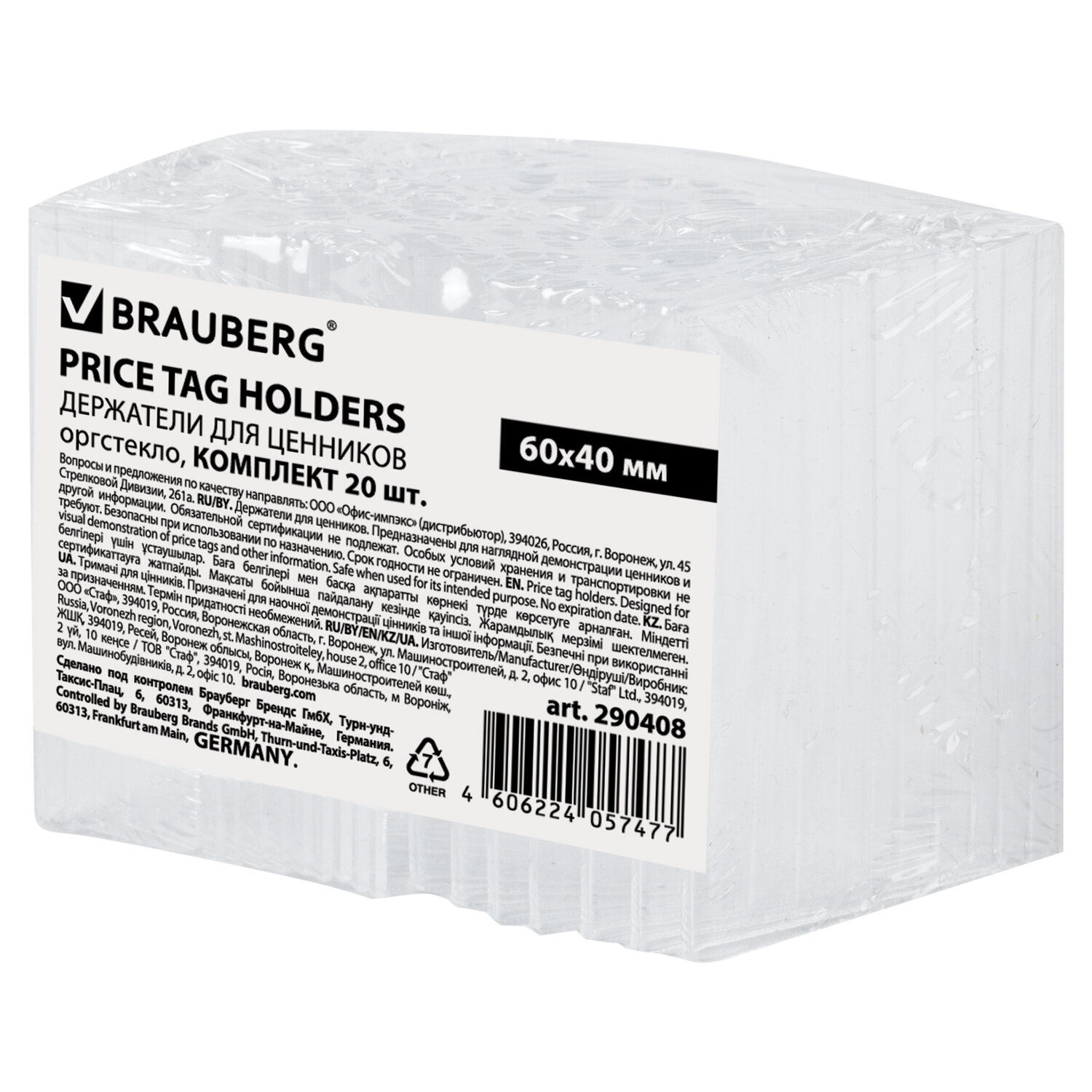 - Держатели для ценников, 60х40 мм, КОМПЛЕКТ 20 шт., оргстекло, BRAUBERG, 290408