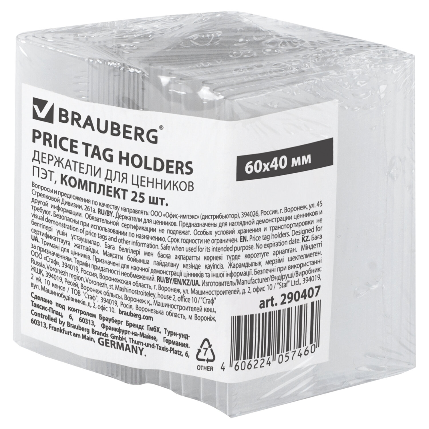 - Держатели для ценников, 60х40 мм, КОМПЛЕКТ 25 шт., ПЭТ, BRAUBERG, 290407