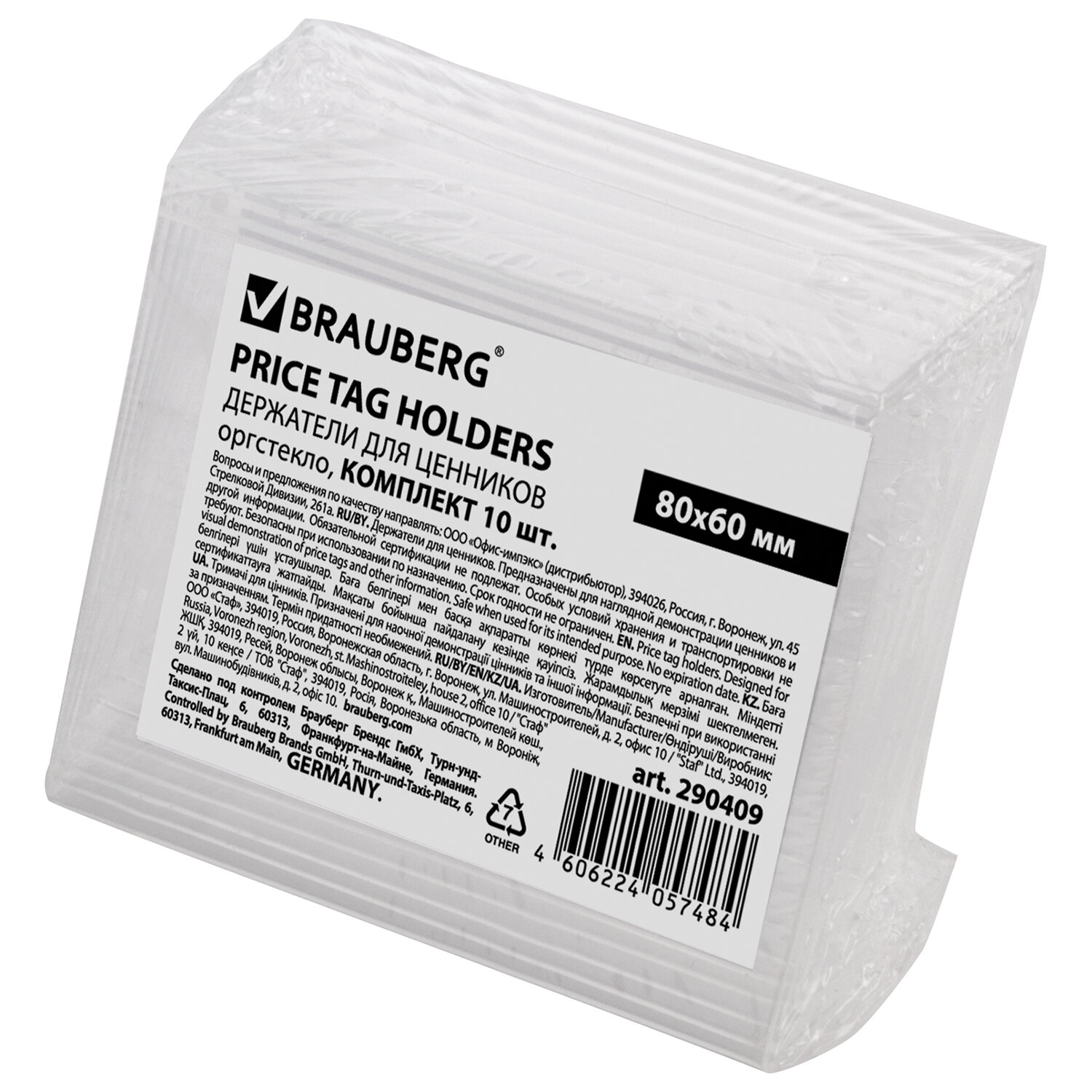 - Держатели для ценников, 80х60 мм, КОМПЛЕКТ 10 шт., оргстекло, BRAUBERG, 290409