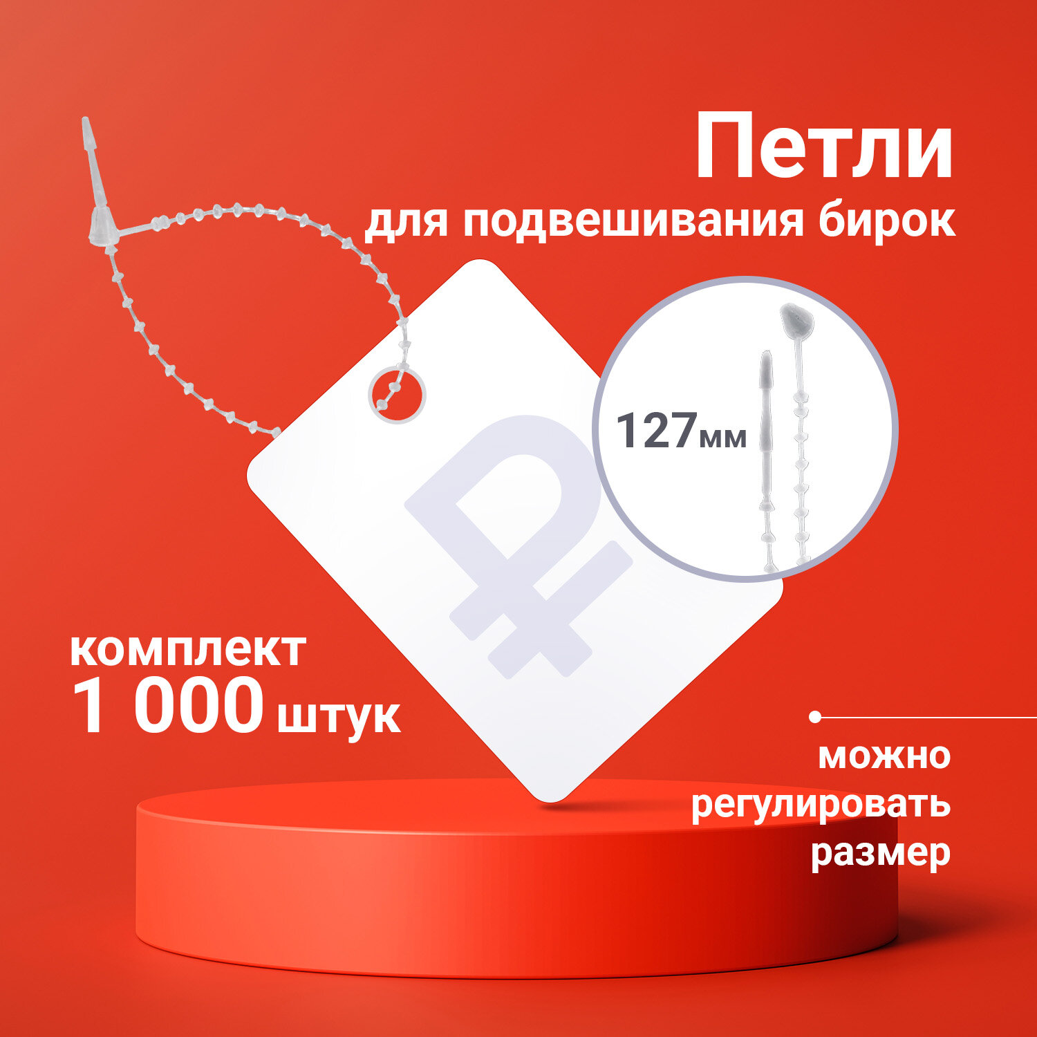 В комплекте – 1000 шт. Петли для подвешивания бирок, регулируемые, 127 мм, комплект 1000 шт., BRAUBERG, 291047