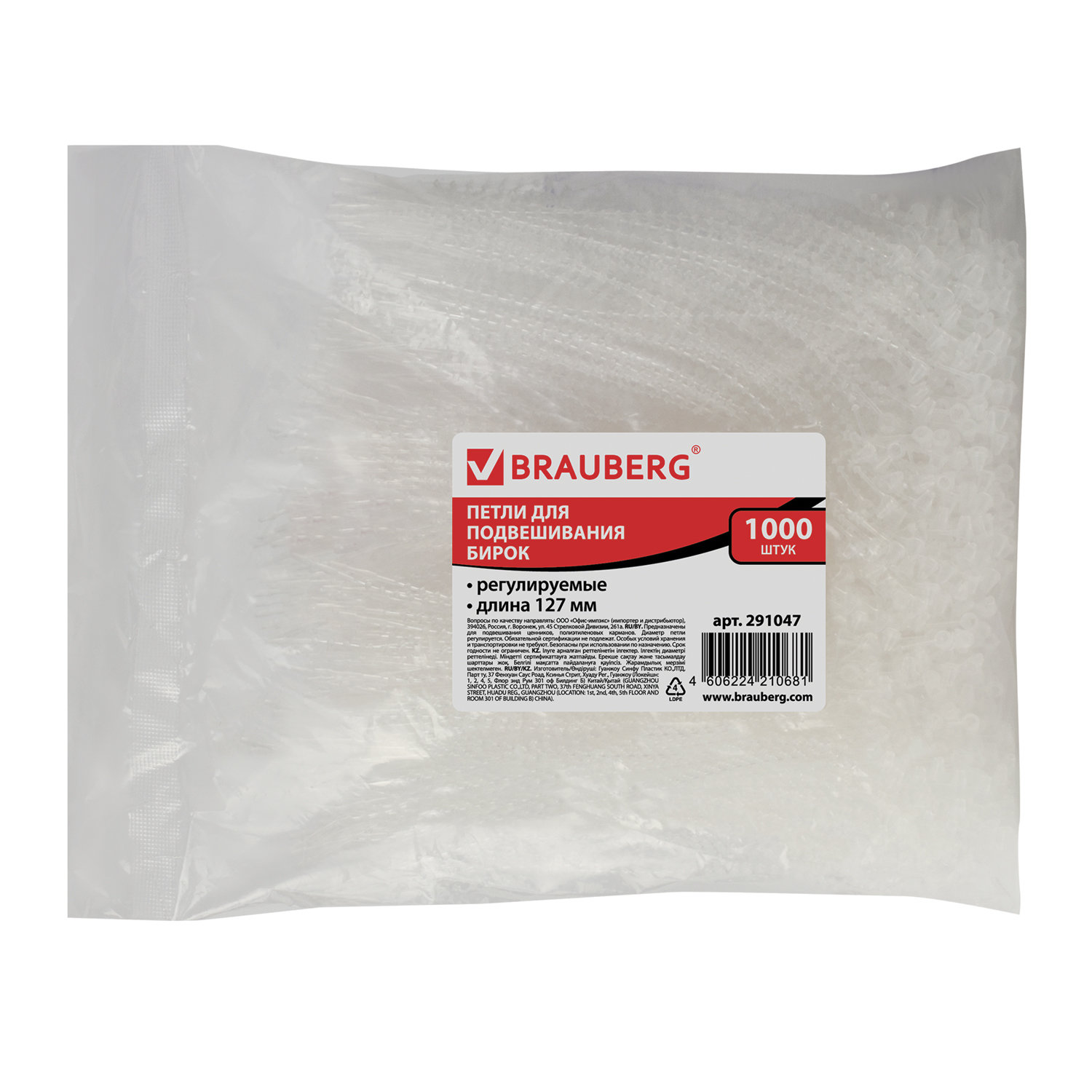- Петли для подвешивания бирок, регулируемые, 127 мм, комплект 1000 шт., BRAUBERG, 291047