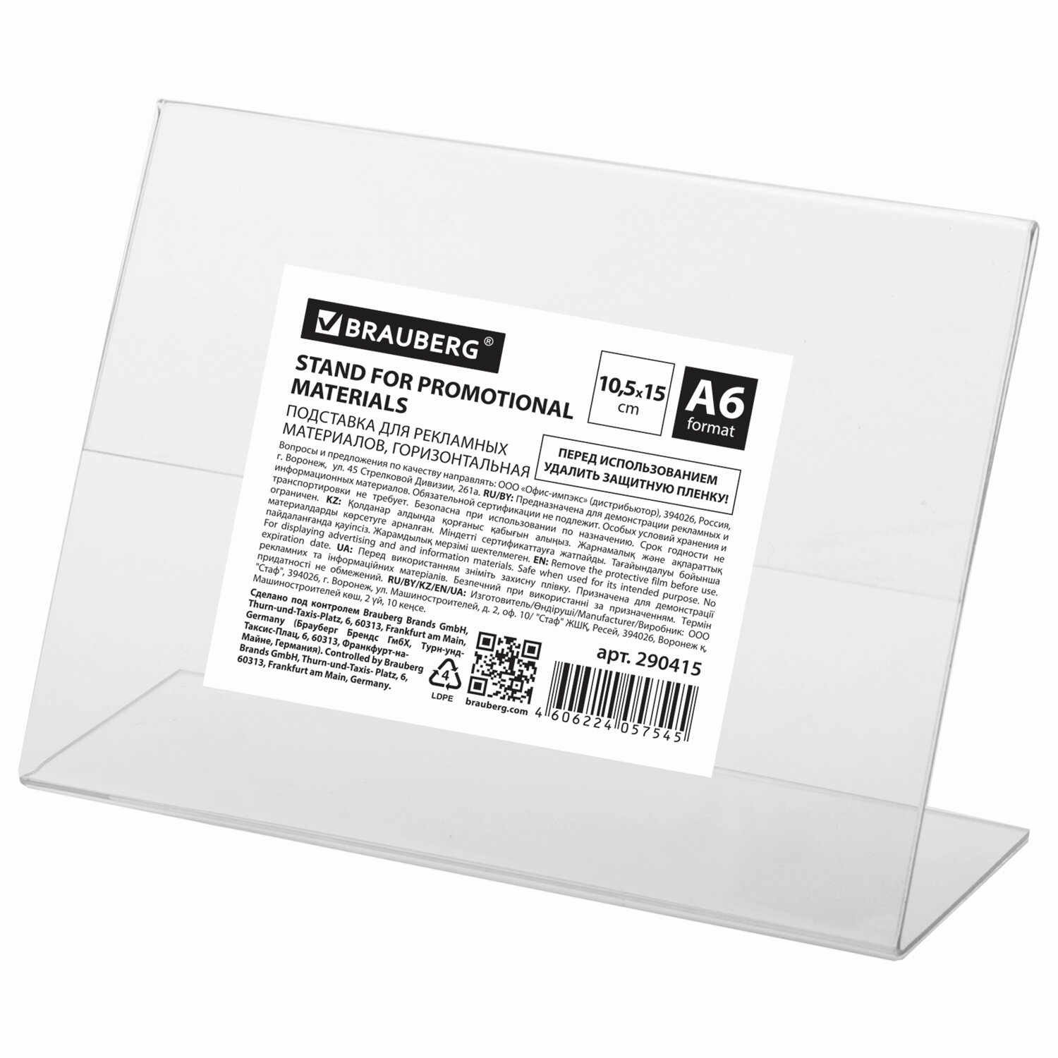 - Подставка настольная для рекламных материалов ГОРИЗОНТАЛЬНАЯ (105х150 мм), А6, односторонняя, BRAUBERG, 290415