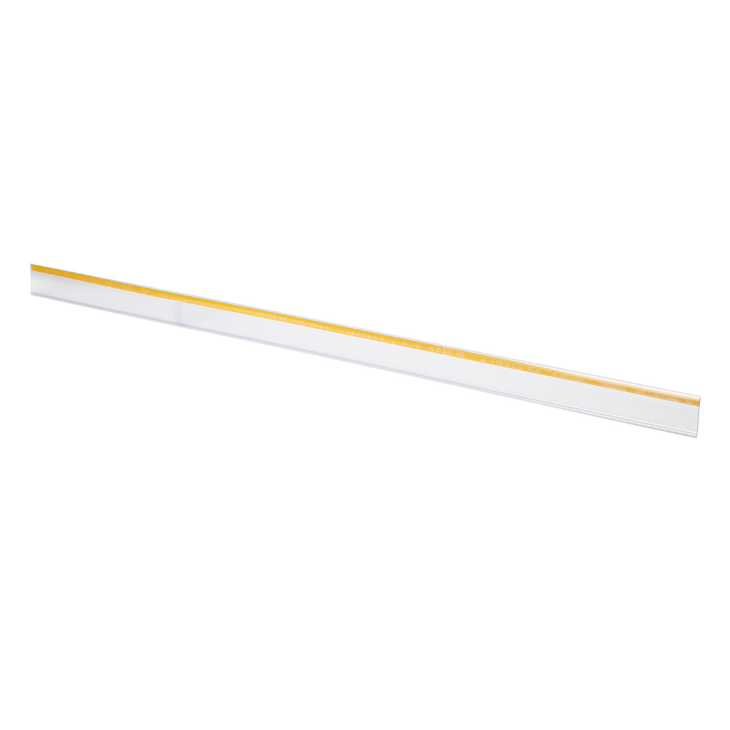 Для более надежного сцепления скотча с поверхностью полку необходимо очистить и обезжирить от грязи и пыли. Затем снять защитную пленку с поверхности ценника и плотно приложить его к торцу полки, для надежности по всей длине прогладить салфеткой, с усилием прижимая ценник к полке. Ценникодержатели полочные самоклеящиеся прозрачные 1000 мм, КОМПЛЕКТ 10 шт., DBR39, 197265