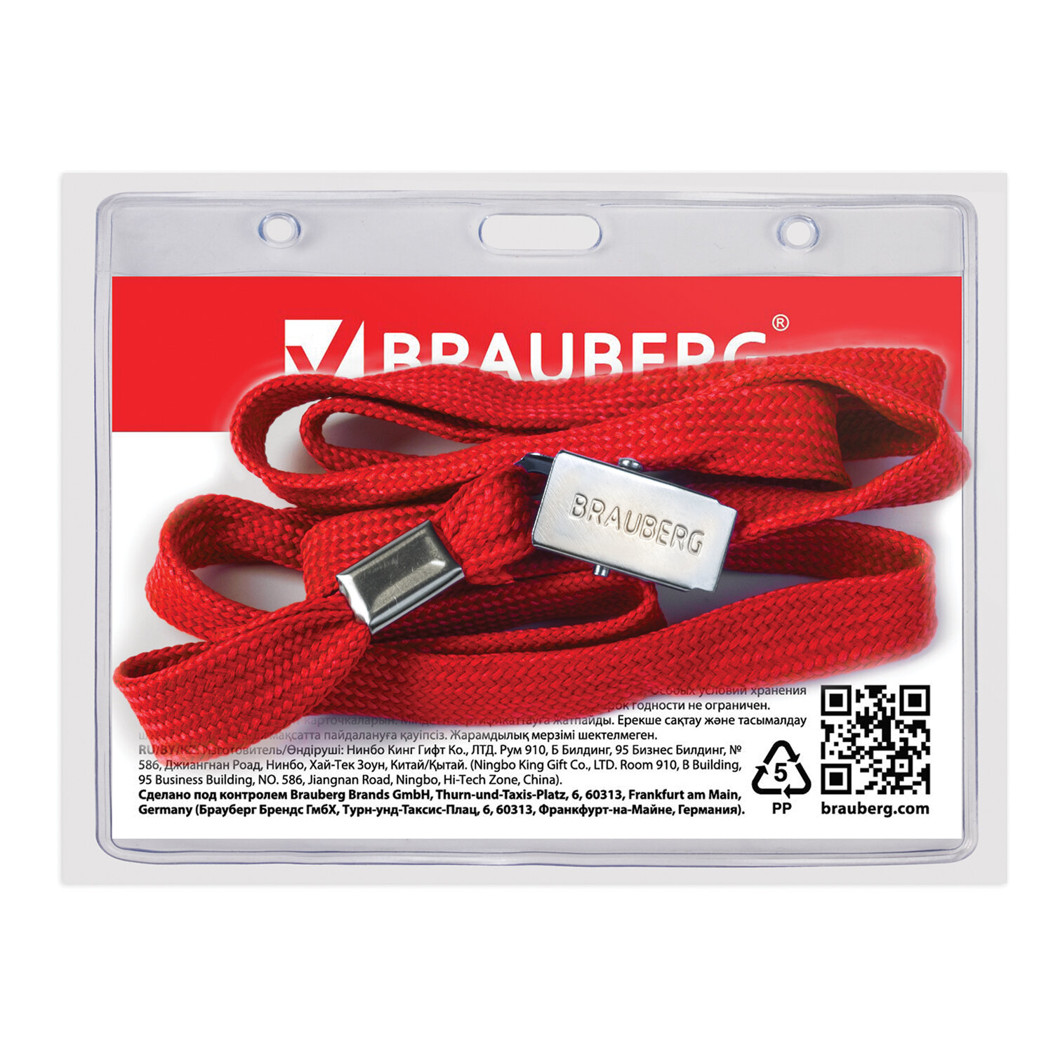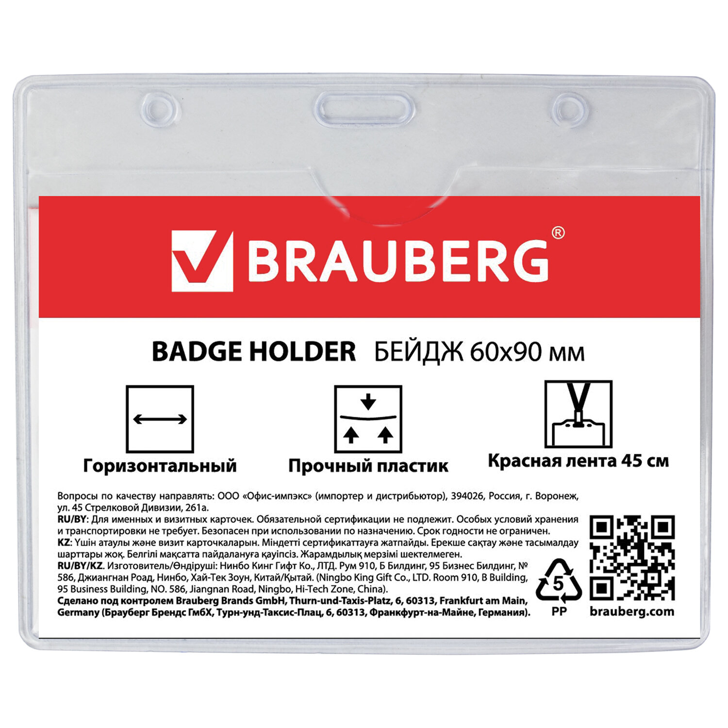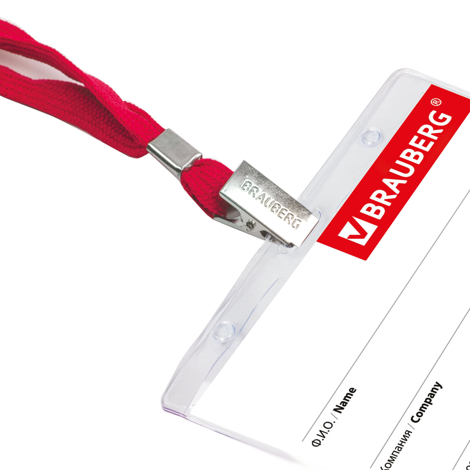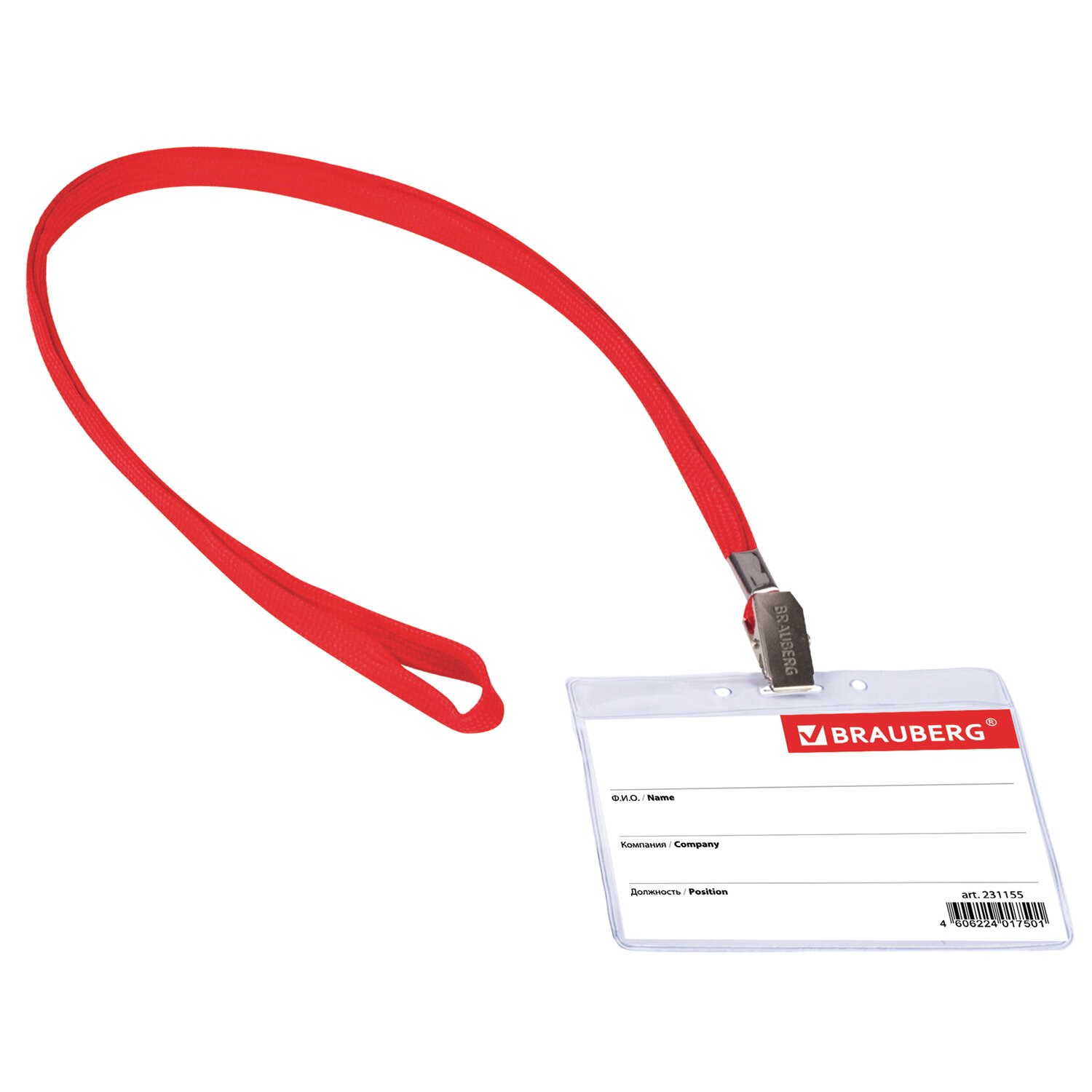 - Бейдж горизонтальный (60х90 мм), на красной ленте 45 см, BRAUBERG, 231155