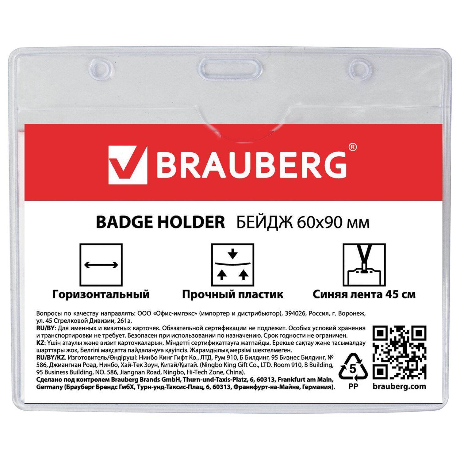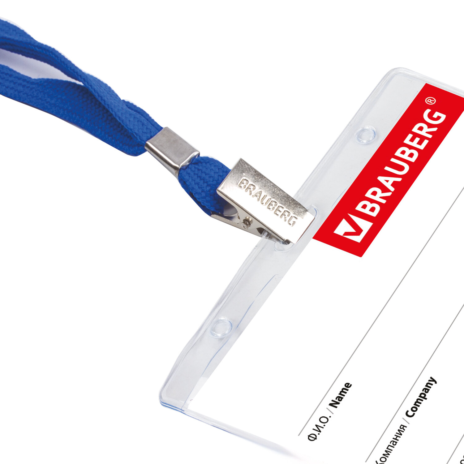 - Бейдж горизонтальный (60х90 мм), на синей ленте 45 см, BRAUBERG, 231156