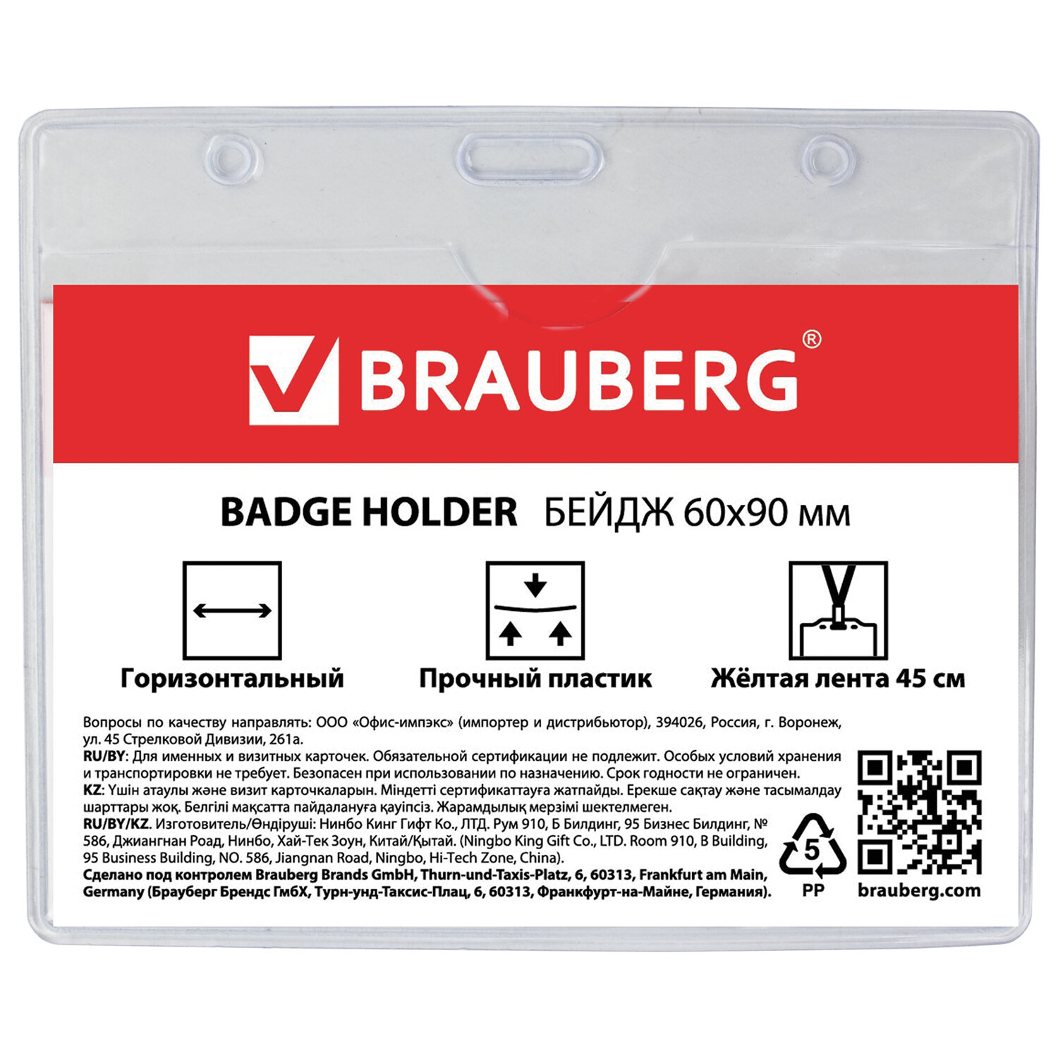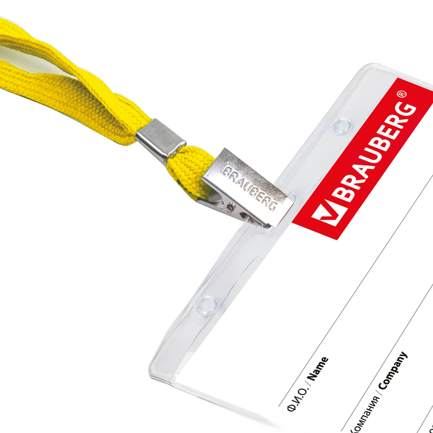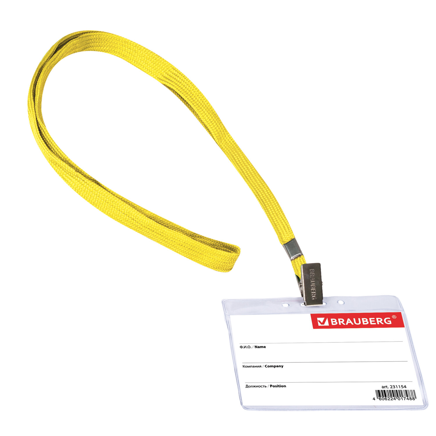 - Бейдж горизонтальный (60х90 мм), на желтой ленте 45 см, BRAUBERG, 231154