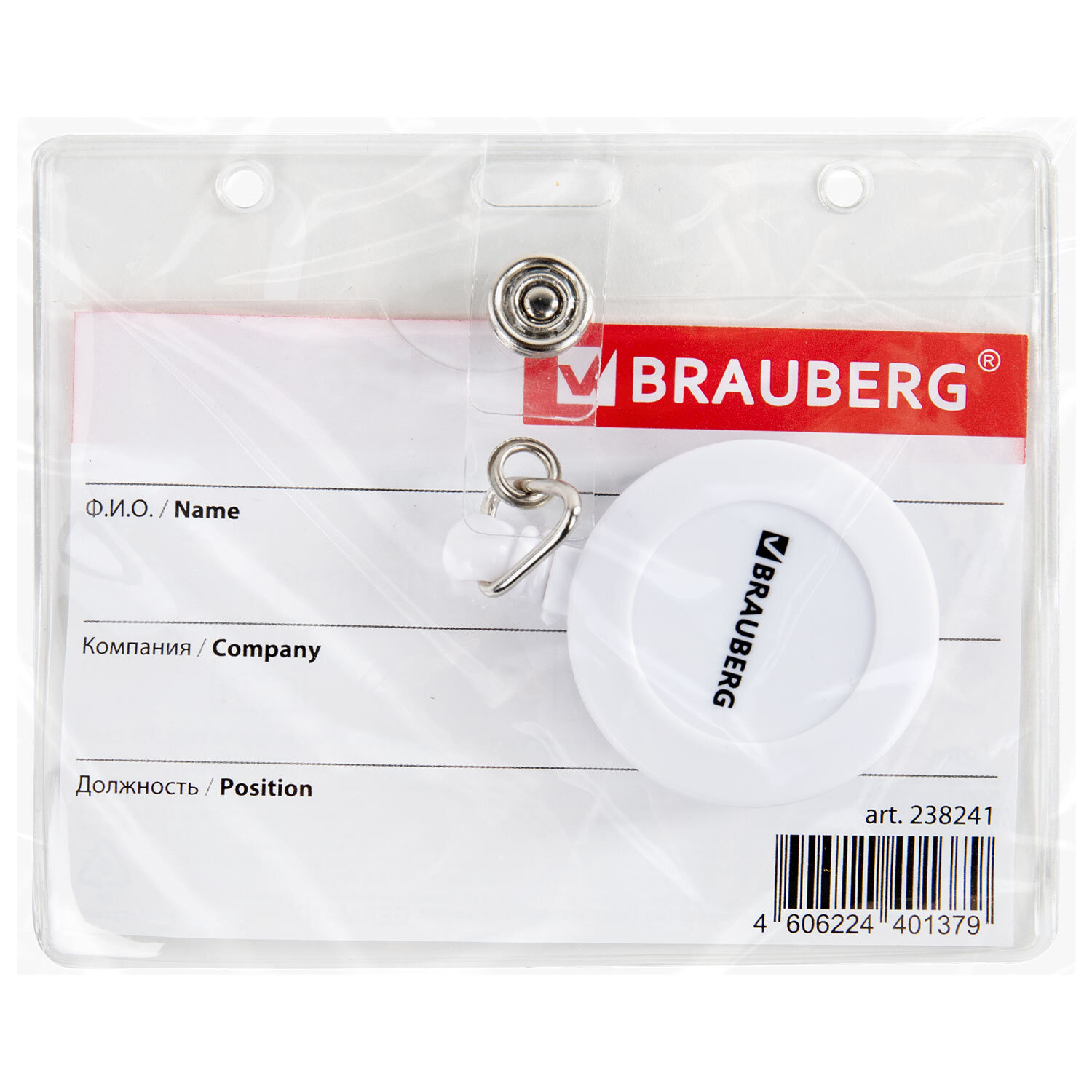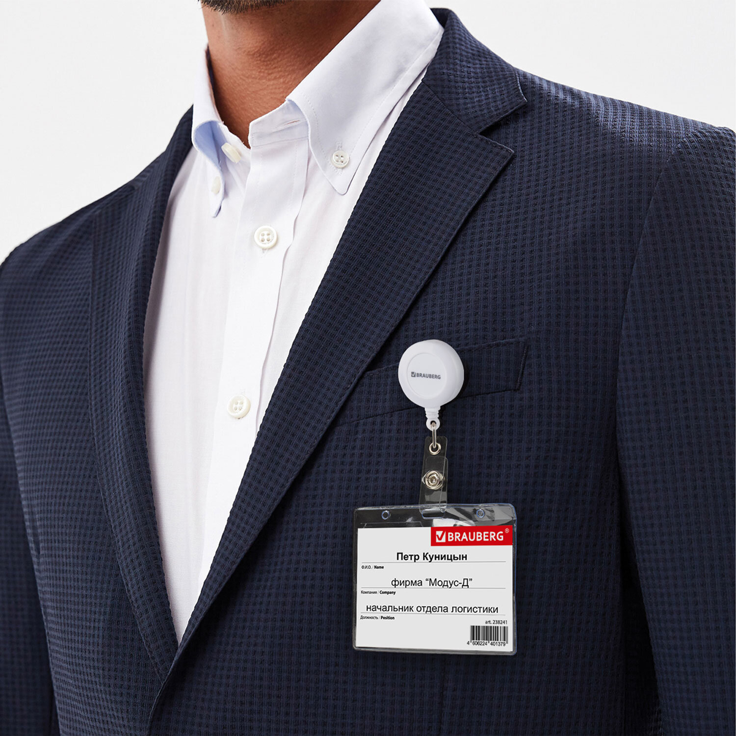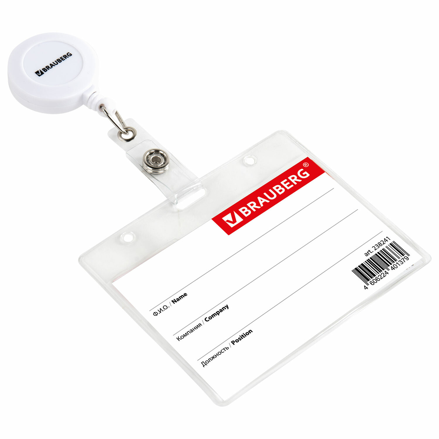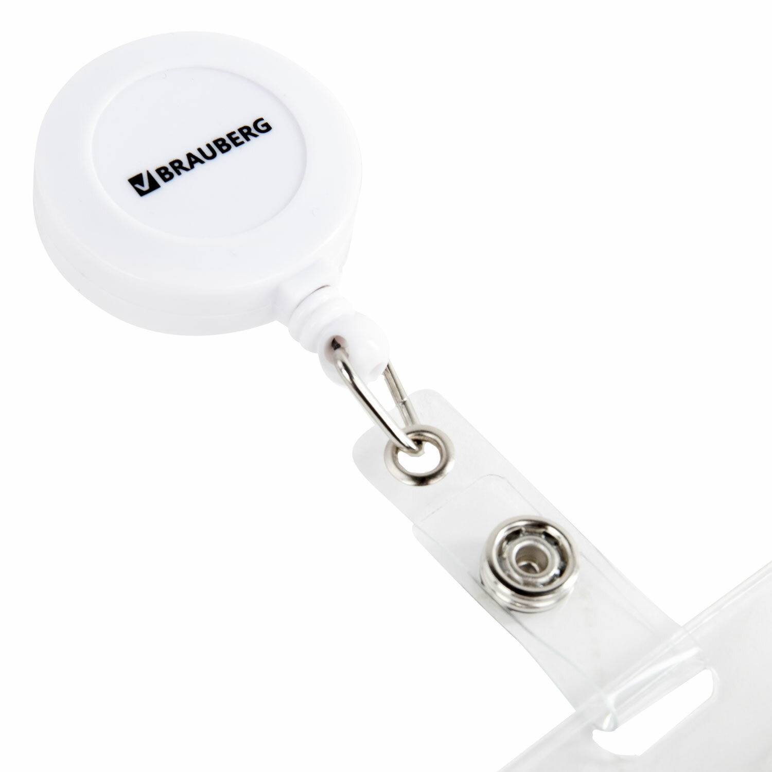 - Бейдж горизонтальный (60х90 мм), с держателем-рулеткой 70 см, белый, BRAUBERG, 238241