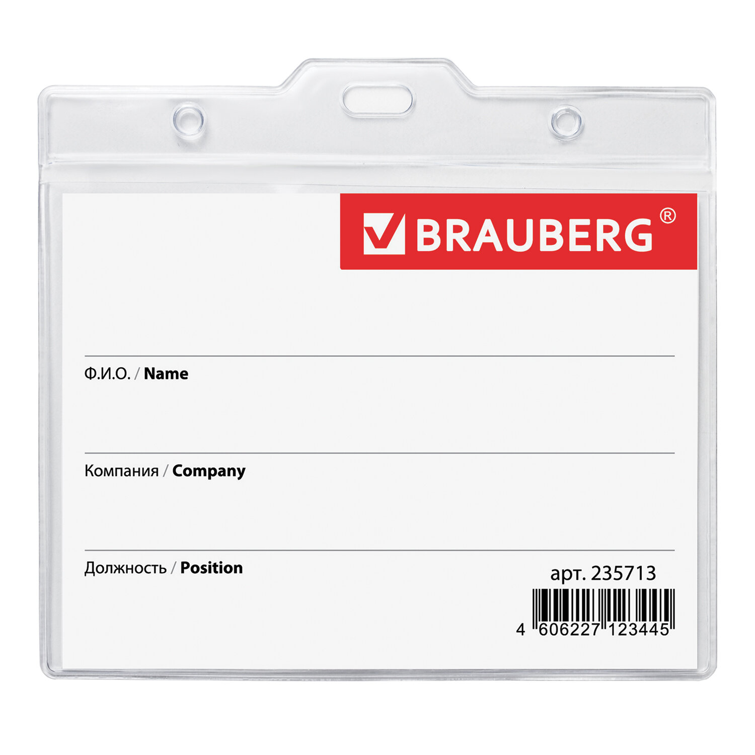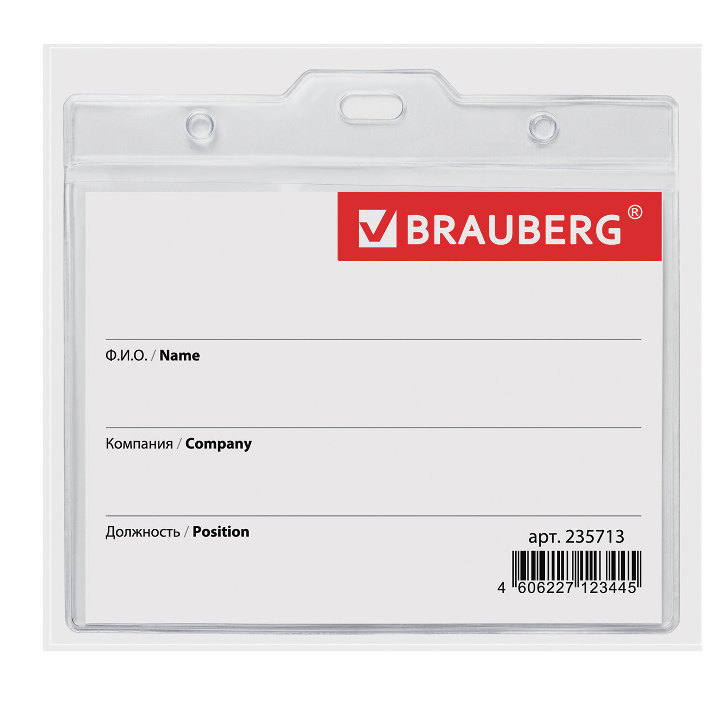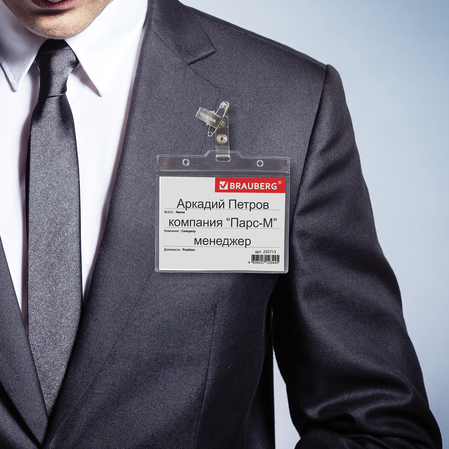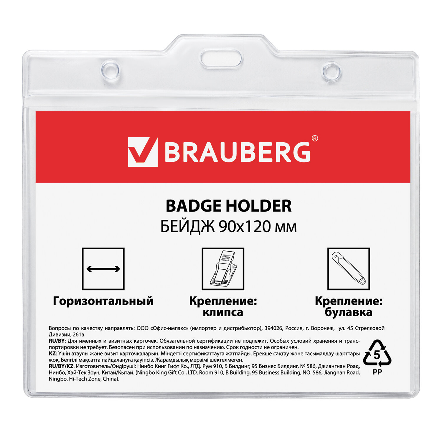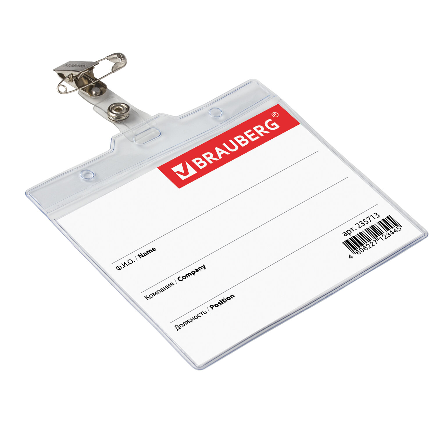 - Бейдж горизонтальный БОЛЬШОЙ (90х120 мм), с клипсой и булавкой, мягкий, BRAUBERG, 235713