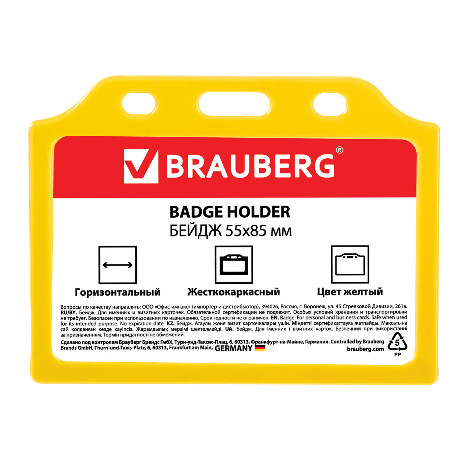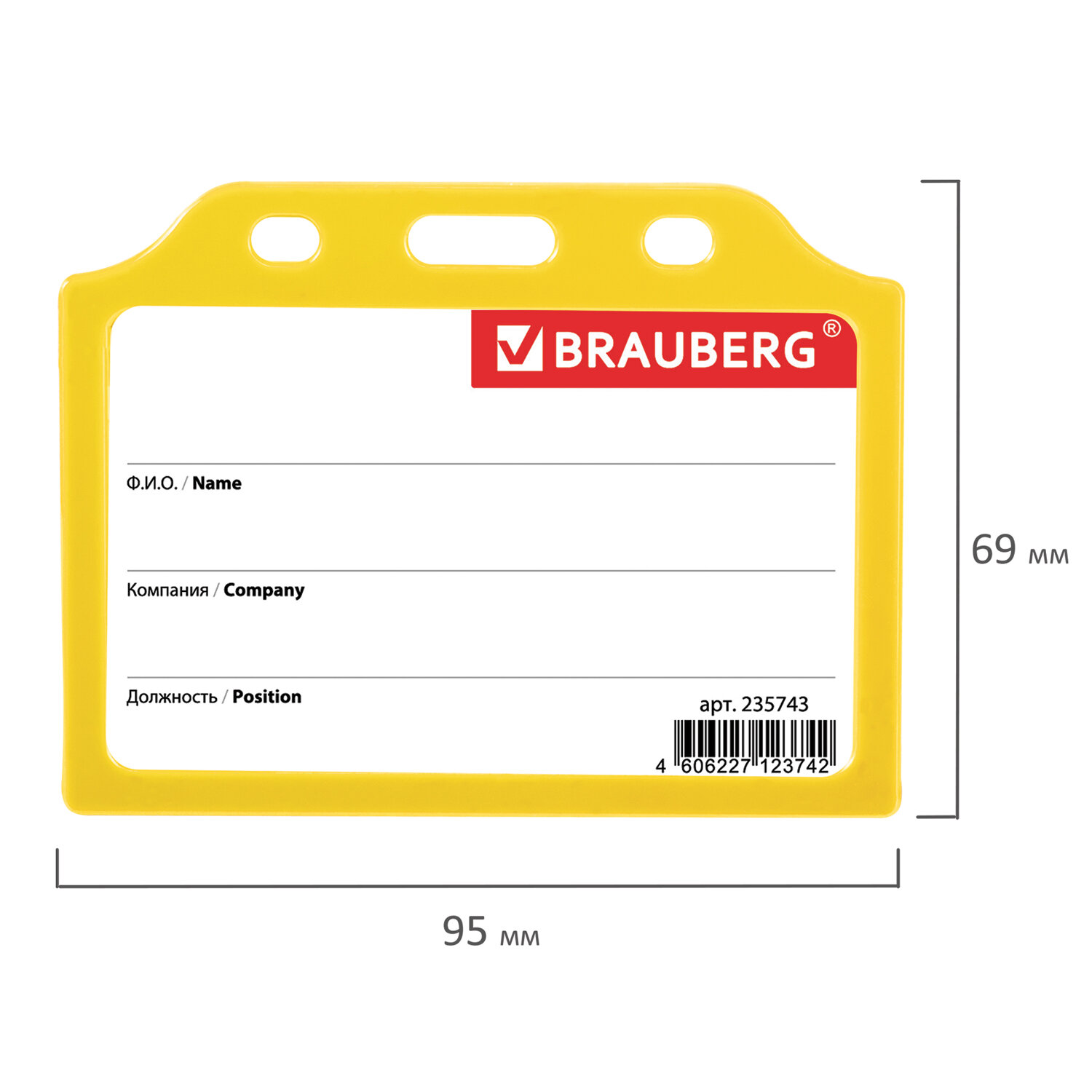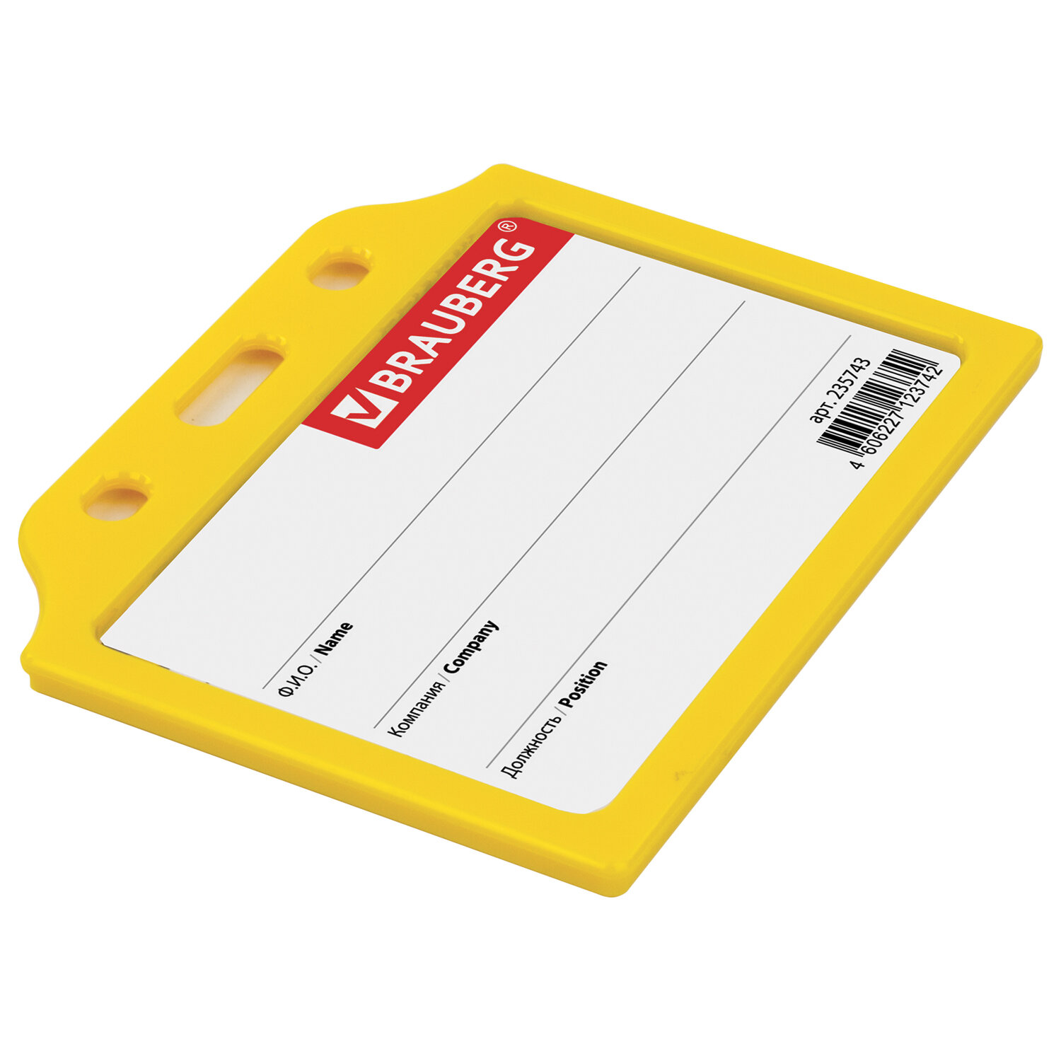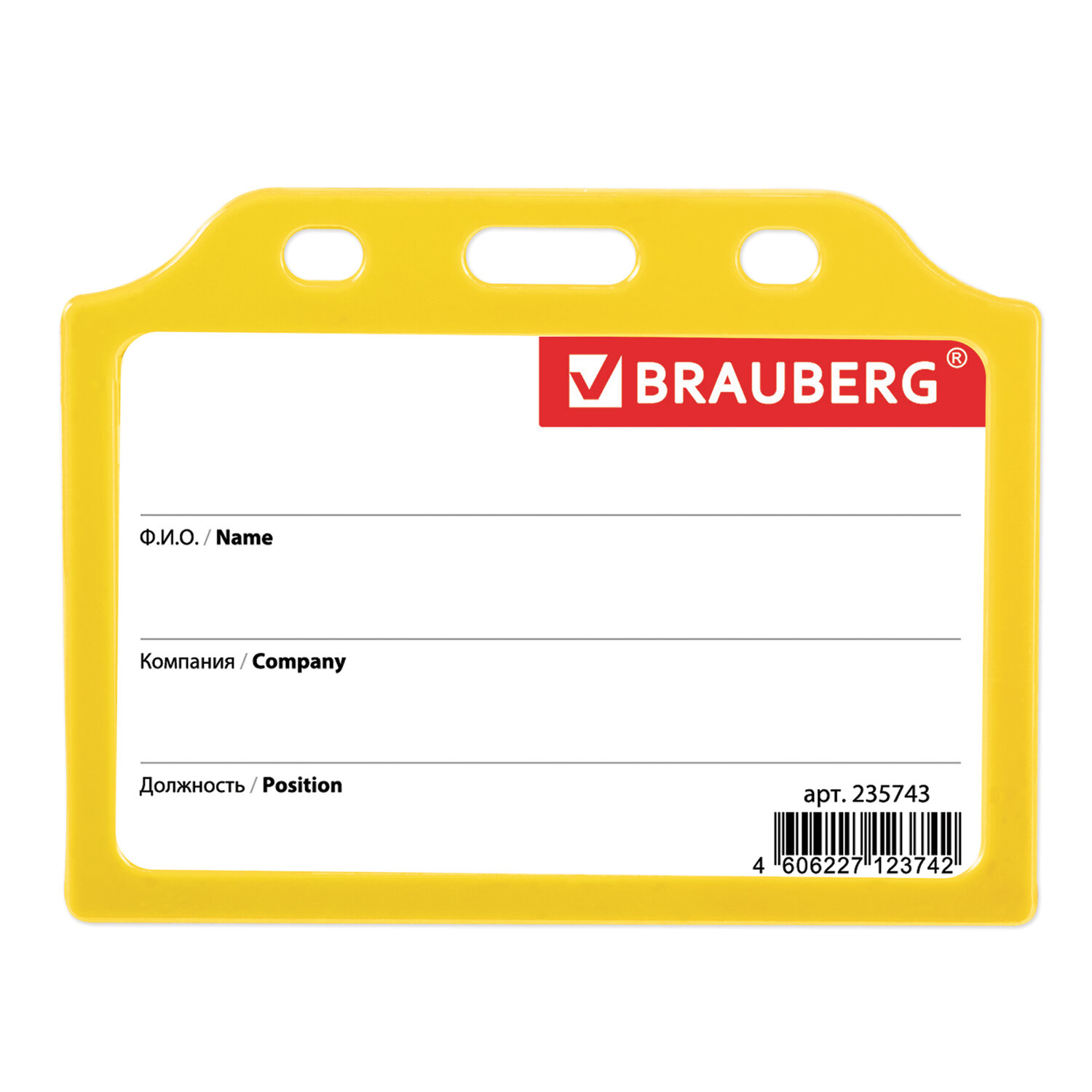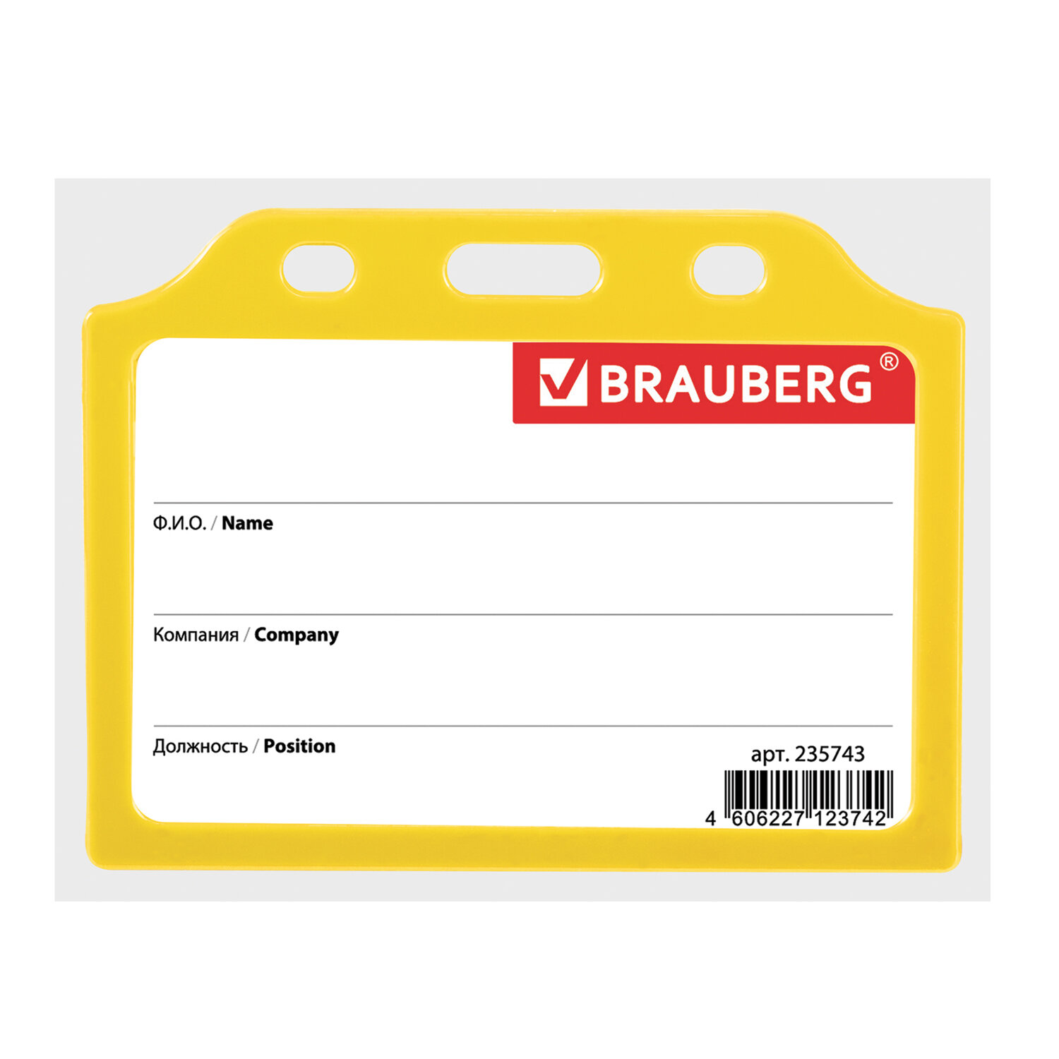 - Бейдж горизонтальный жесткокаркасный (55х85 мм), без держателя, ЖЕЛТЫЙ, BRAUBERG, 235743