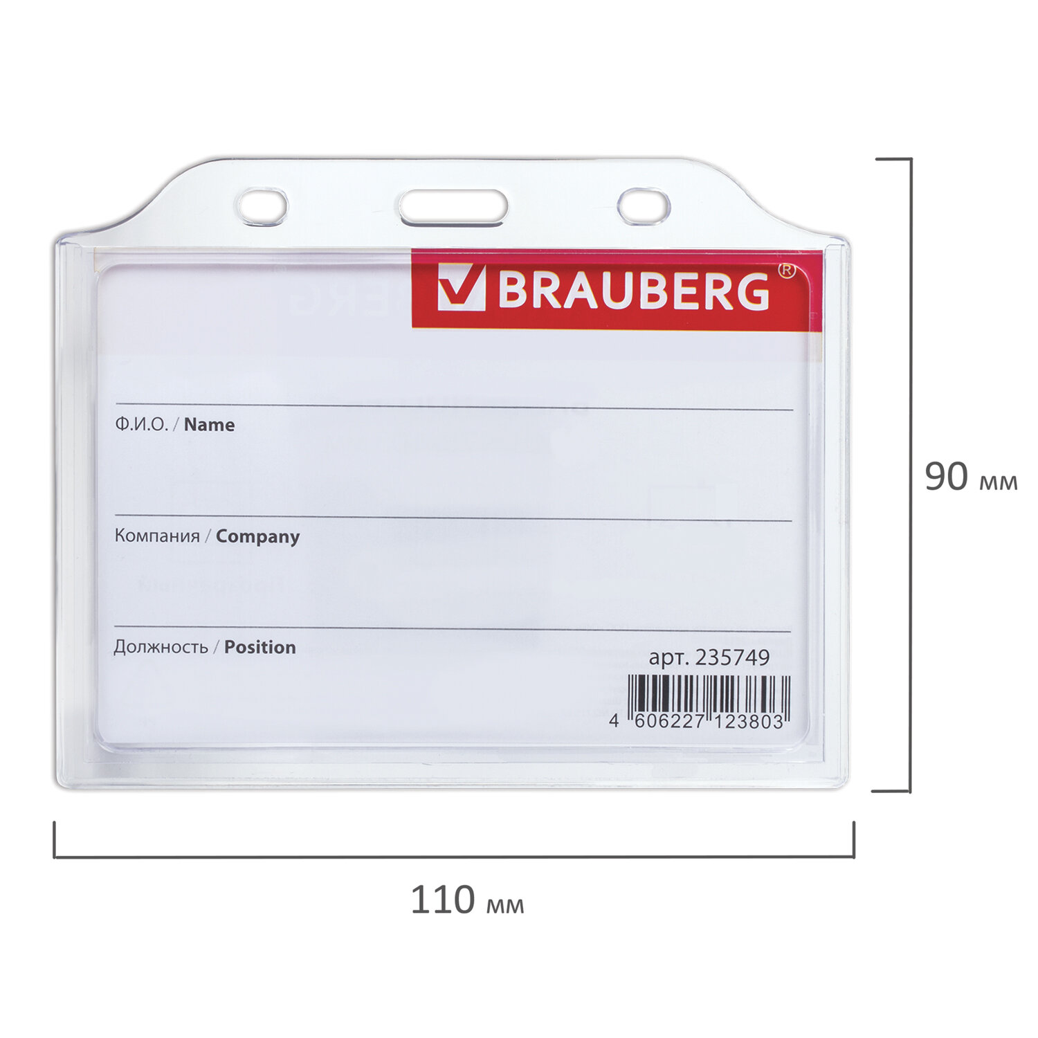 - Бейдж горизонтальный жесткокаркасный (75х105 мм), без держателя, ПРОЗРАЧНЫЙ, BRAUBERG, 235749