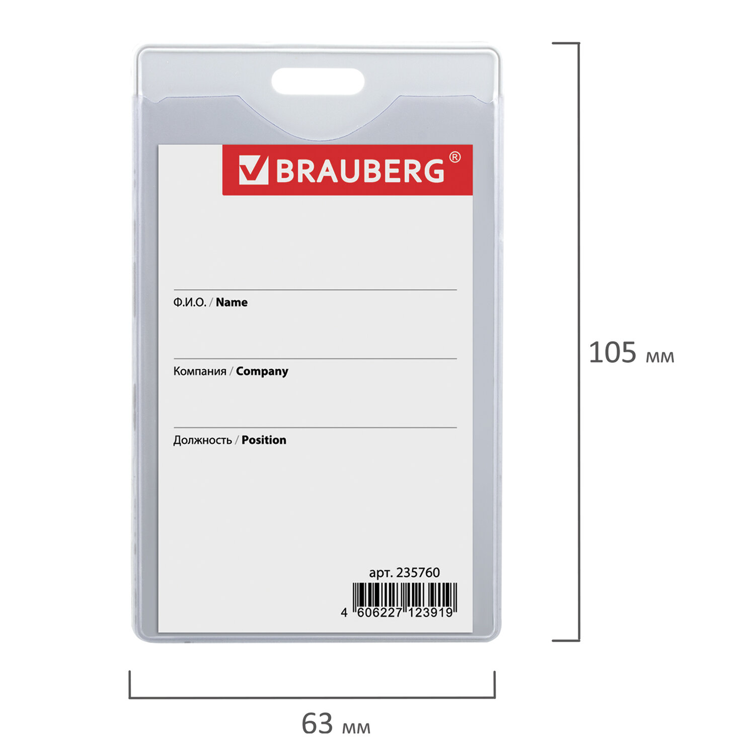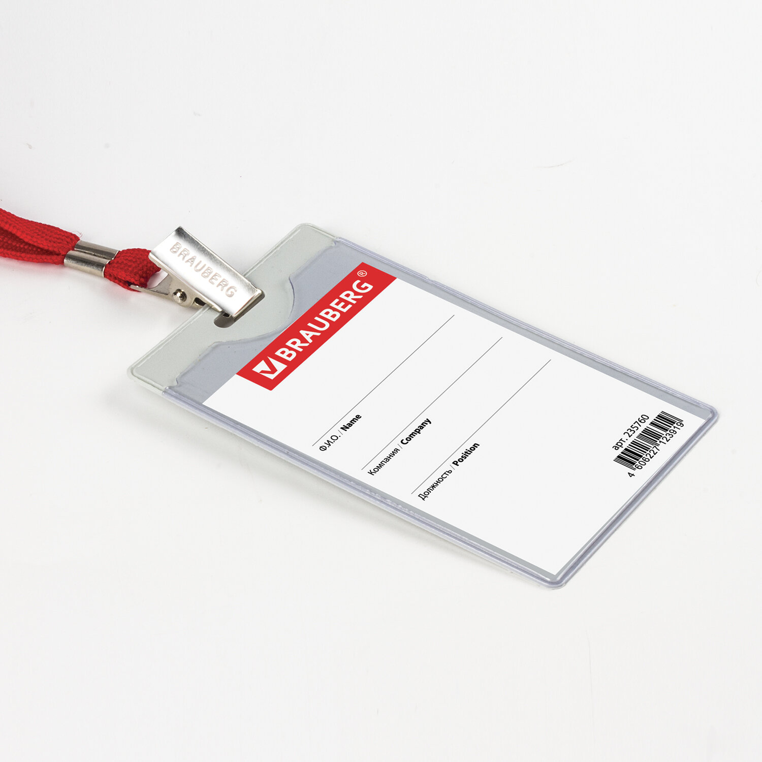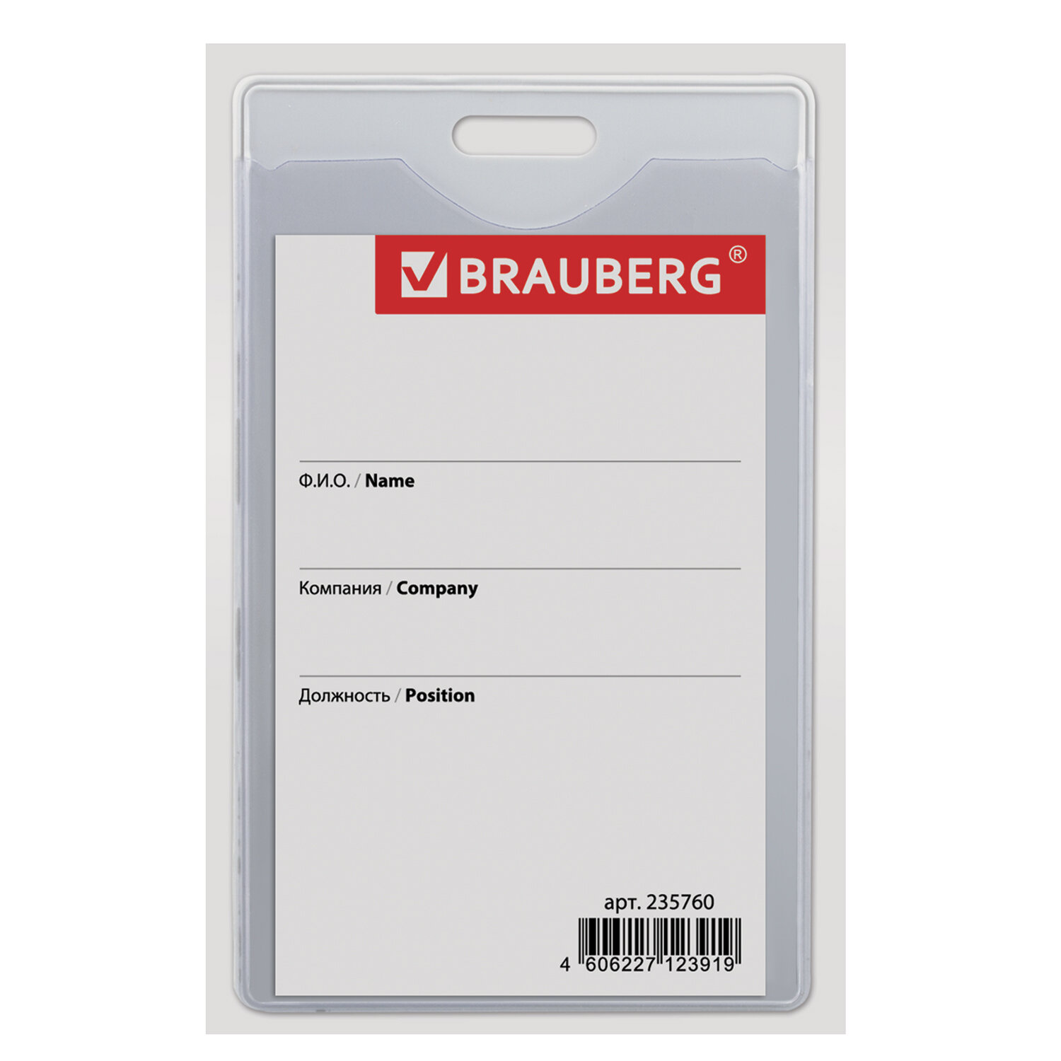 - Бейдж вертикальный (85х55 мм), без держателя, СЕРЫЙ, твердый пластик, BRAUBERG, 235760
