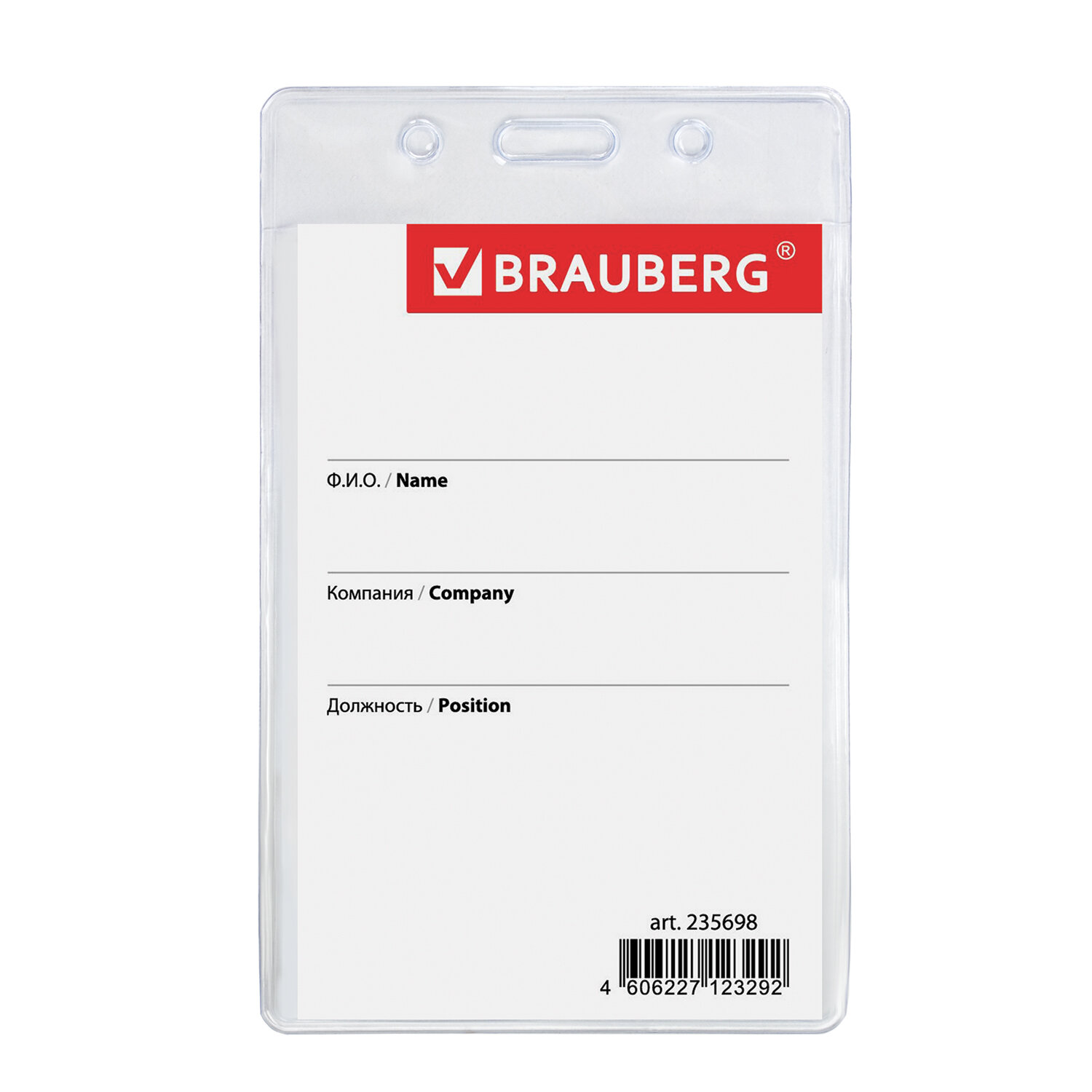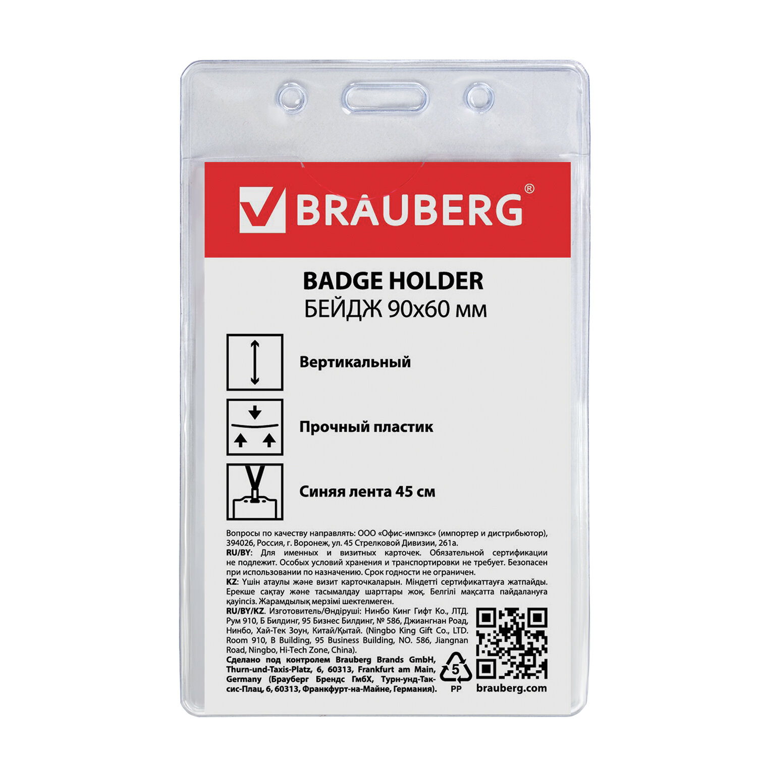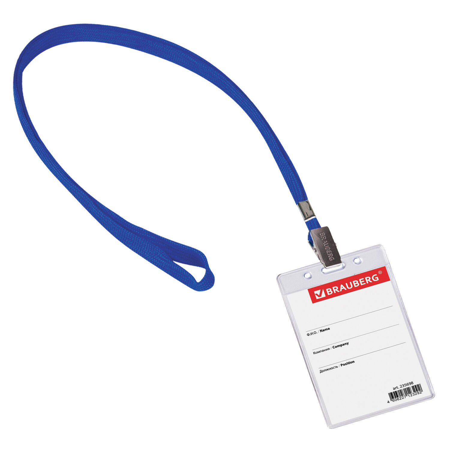 - Бейдж вертикальный (90х60 мм), на синей ленте 45 см, BRAUBERG, 235698