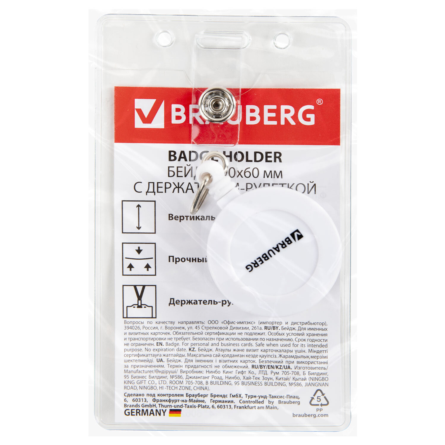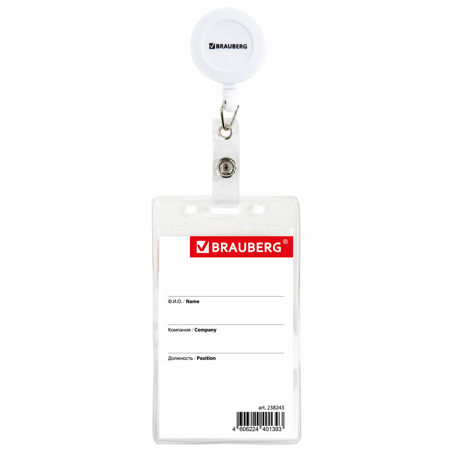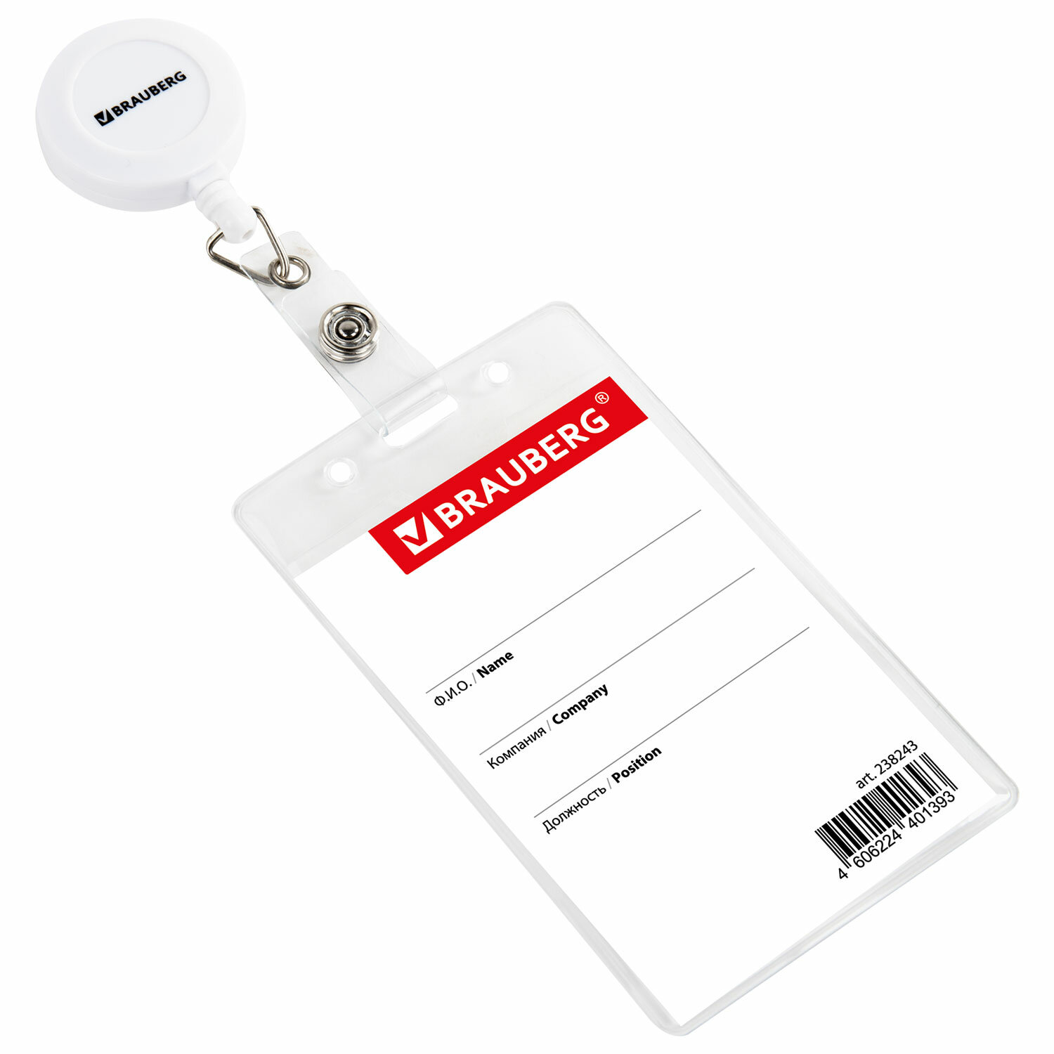 - Бейдж вертикальный (90х60 мм), с держателем-рулеткой 70 см, белый, BRAUBERG, 238243