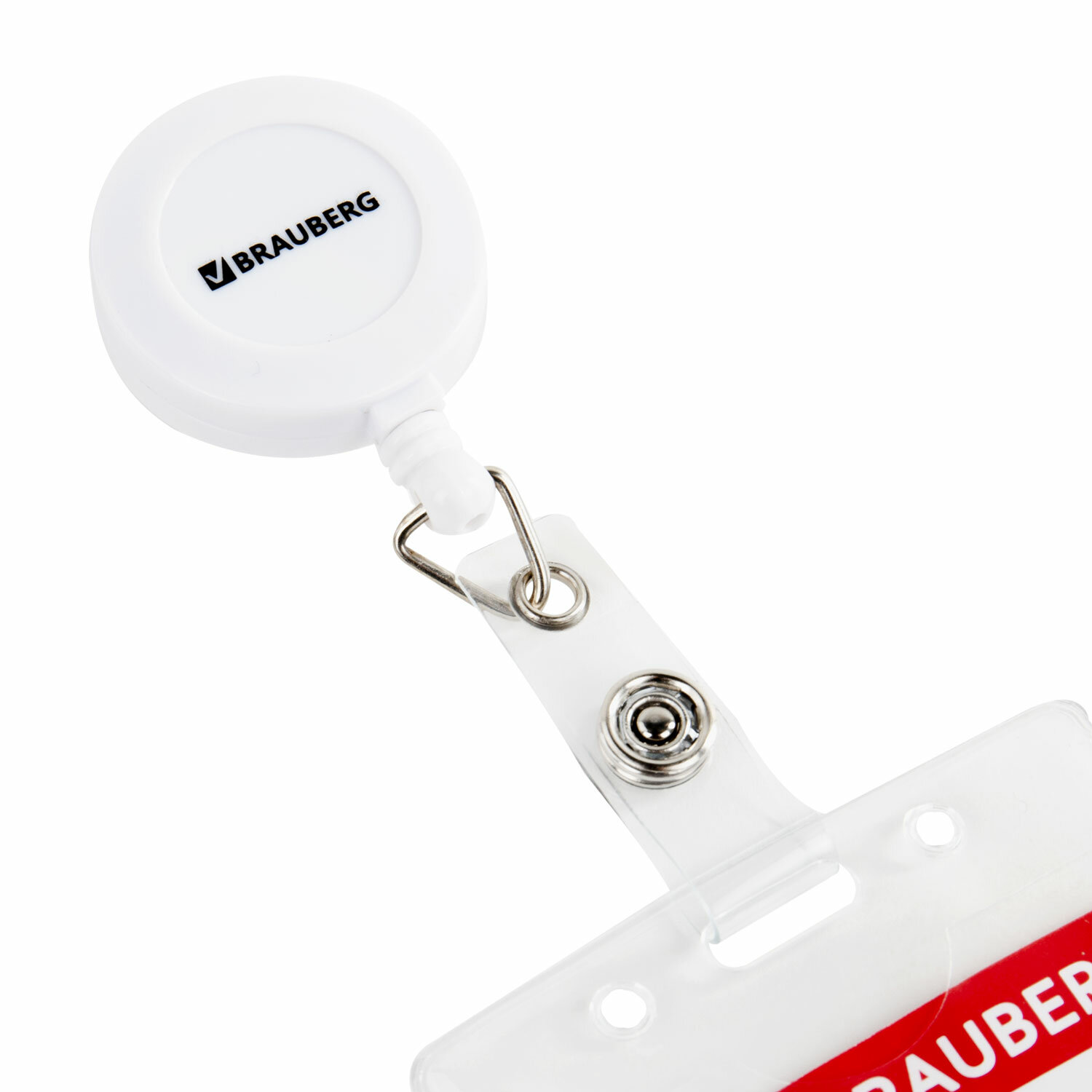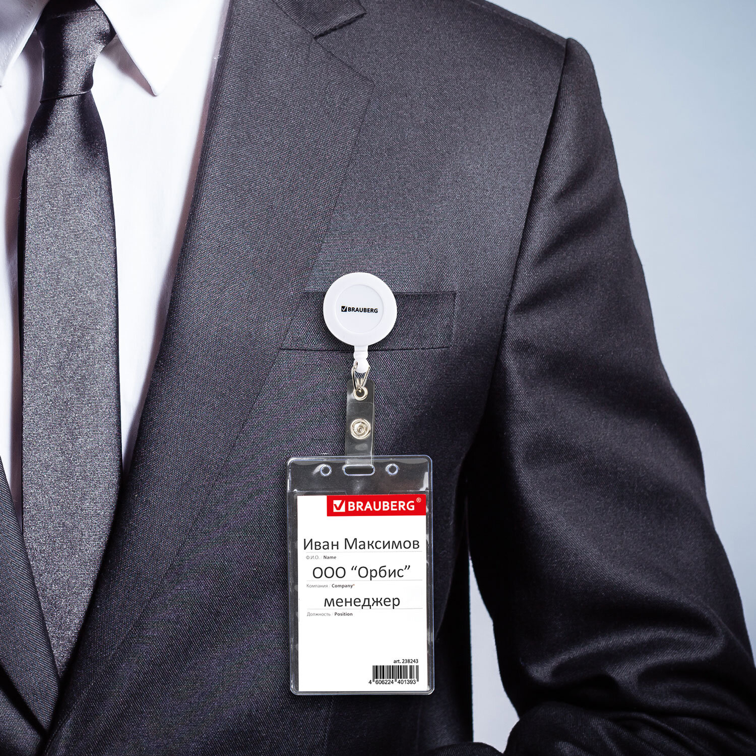 Бейдж вертикальный (90х60 мм), с держателем-рулеткой 70 см, белый, BRAUBERG, 238243