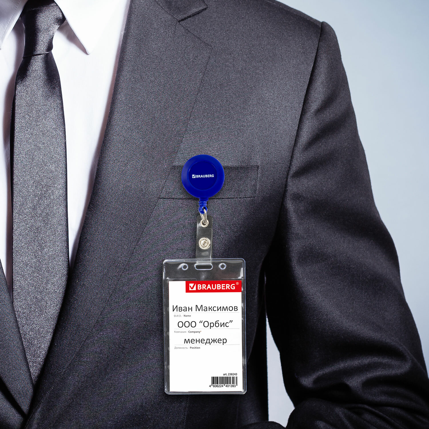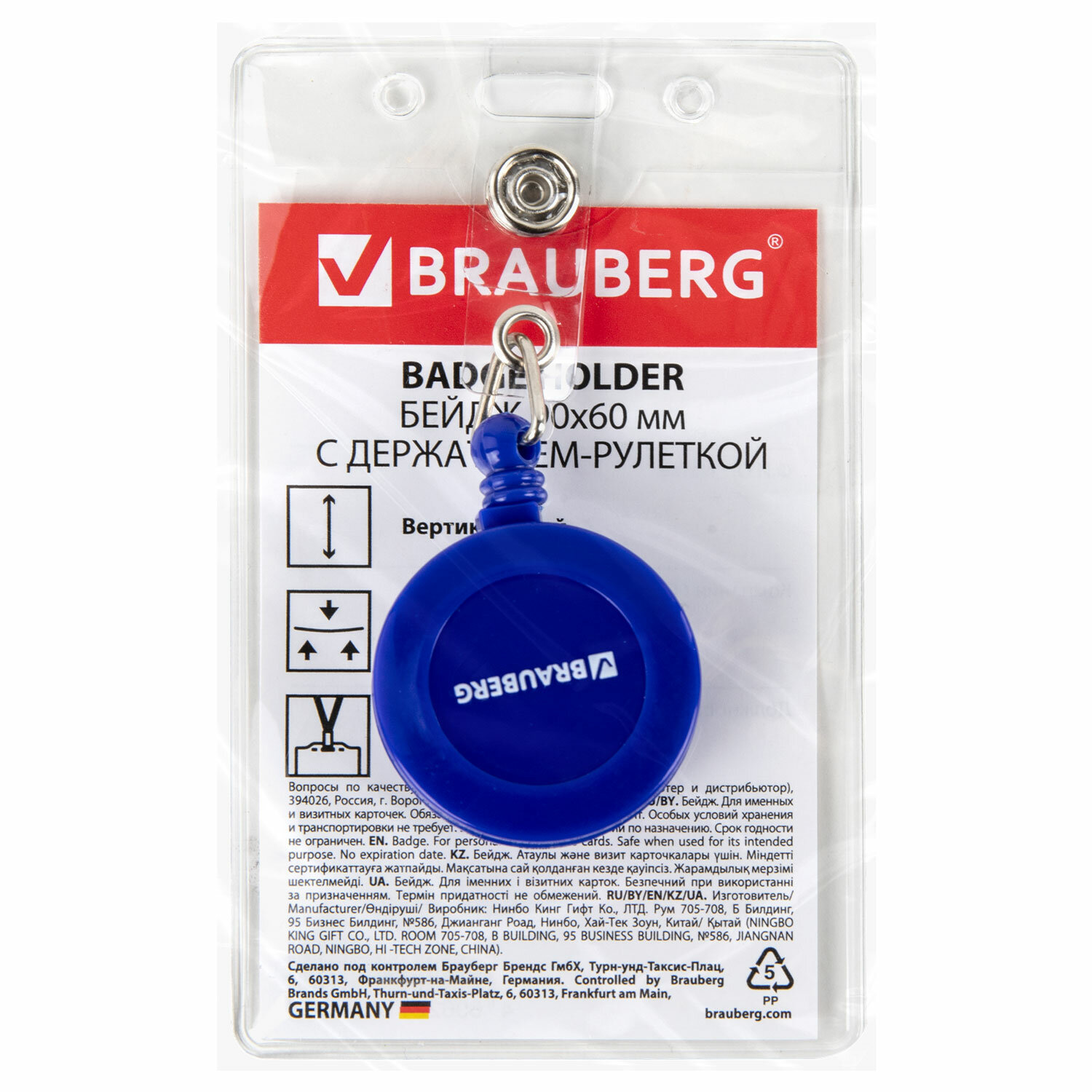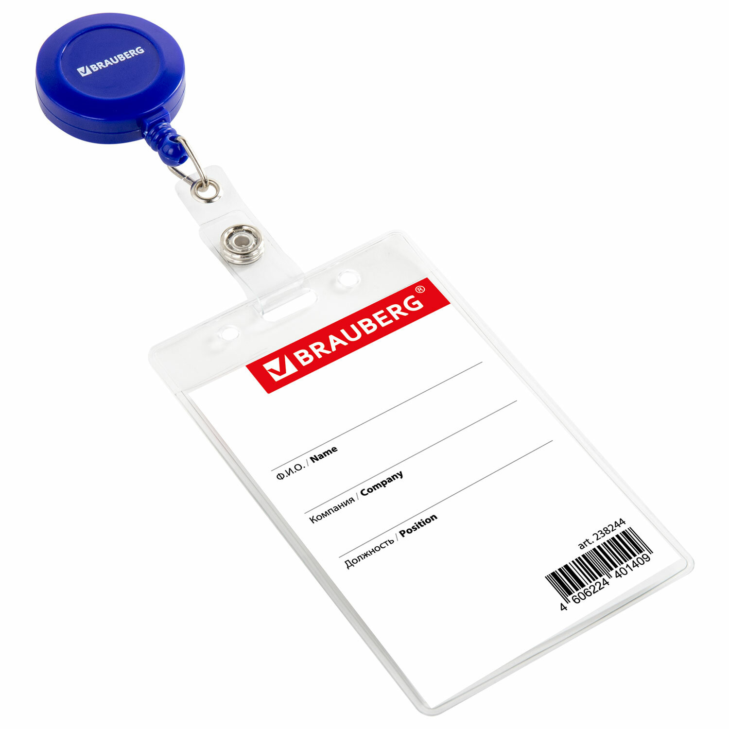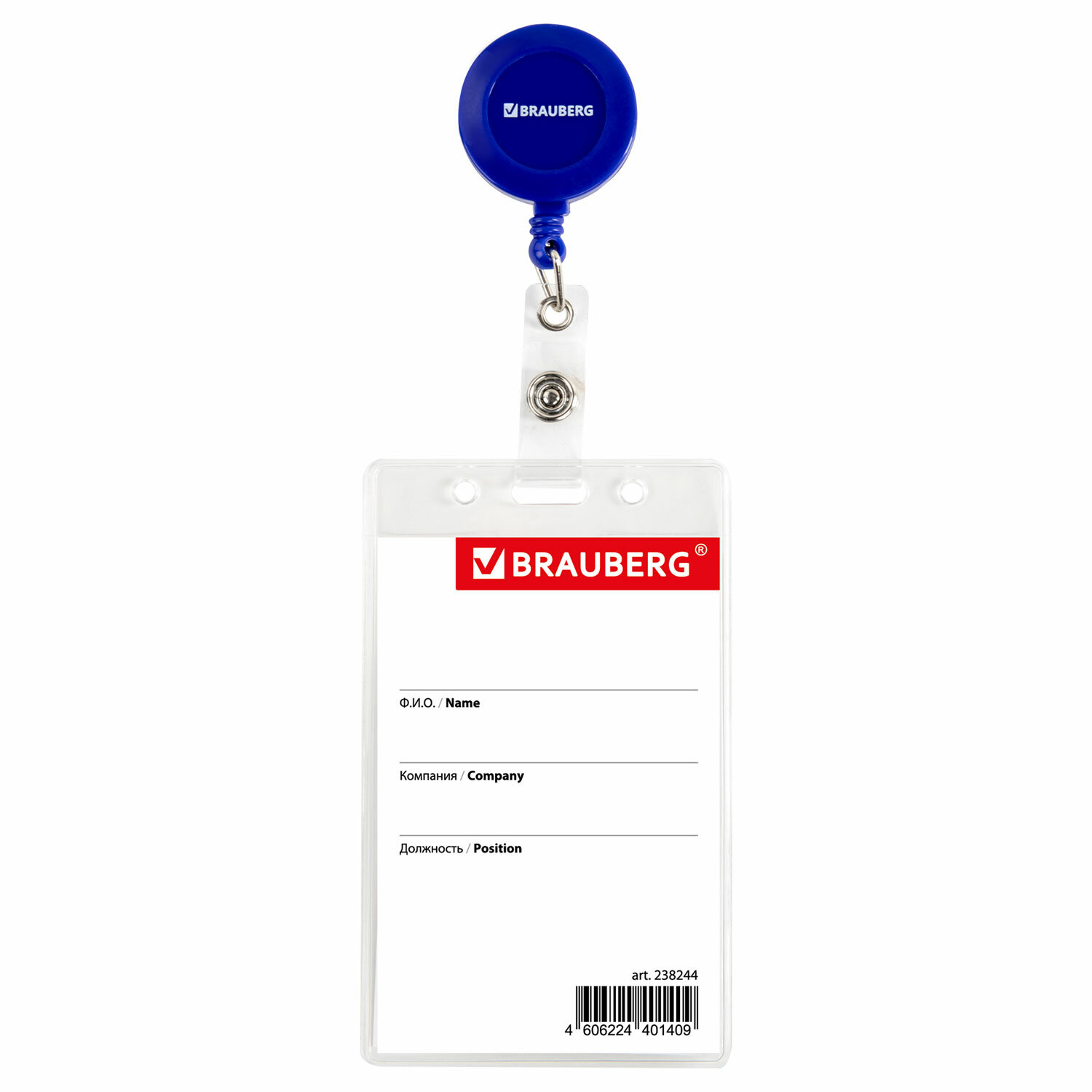 - Бейдж вертикальный (90х60 мм), с держателем-рулеткой 70 см, синий, BRAUBERG, 238244