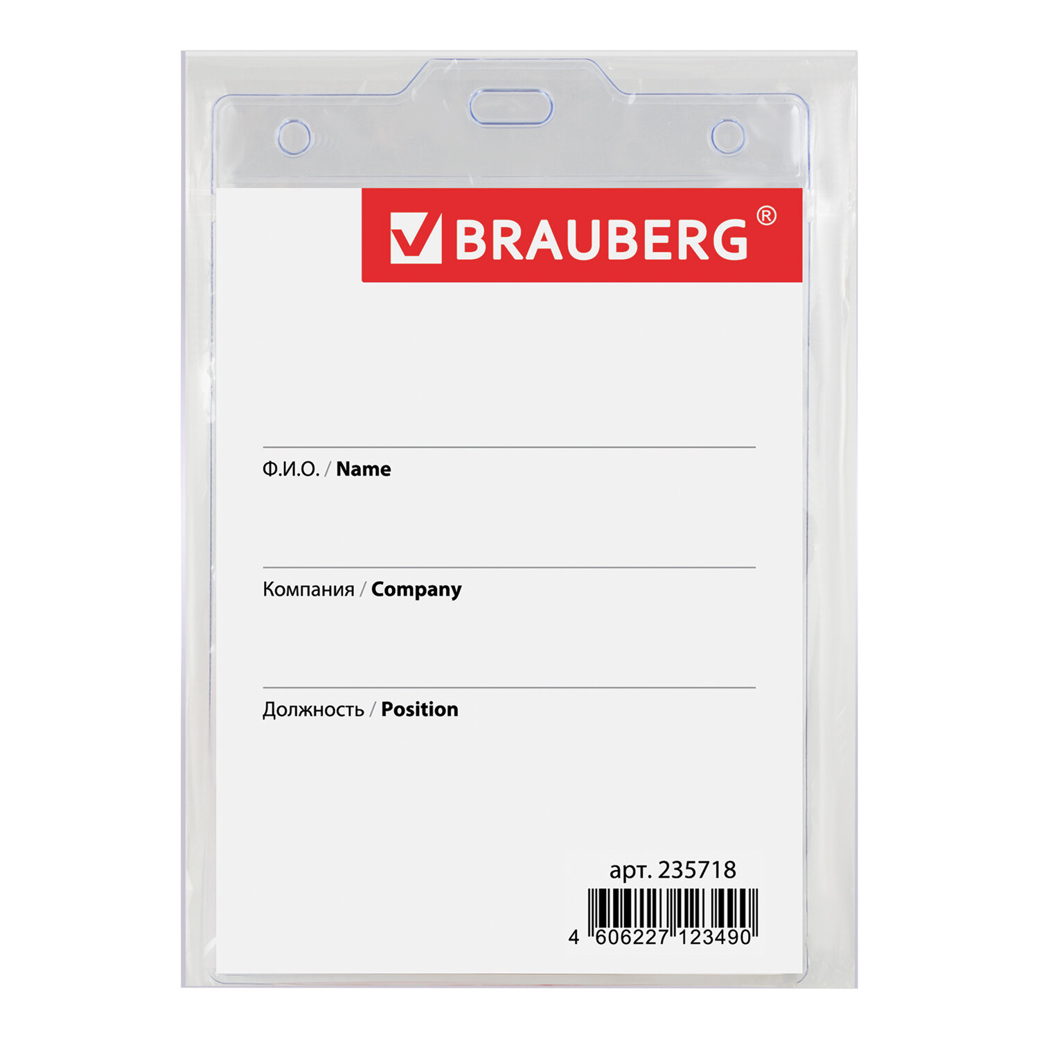 - Бейдж вертикальный БОЛЬШОЙ (120х90 мм), на черном шнурке 45 см, 2 карабина, BRAUBERG, 235718