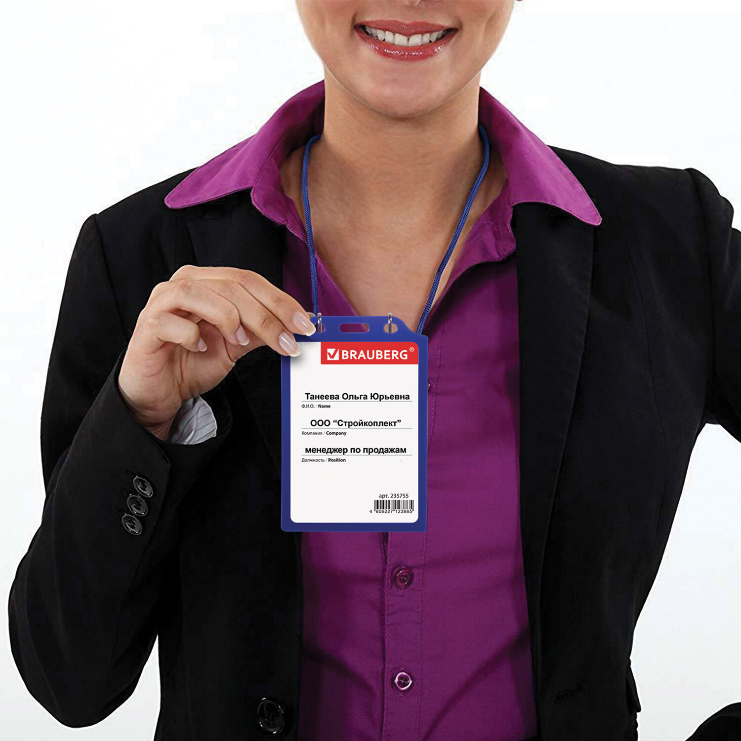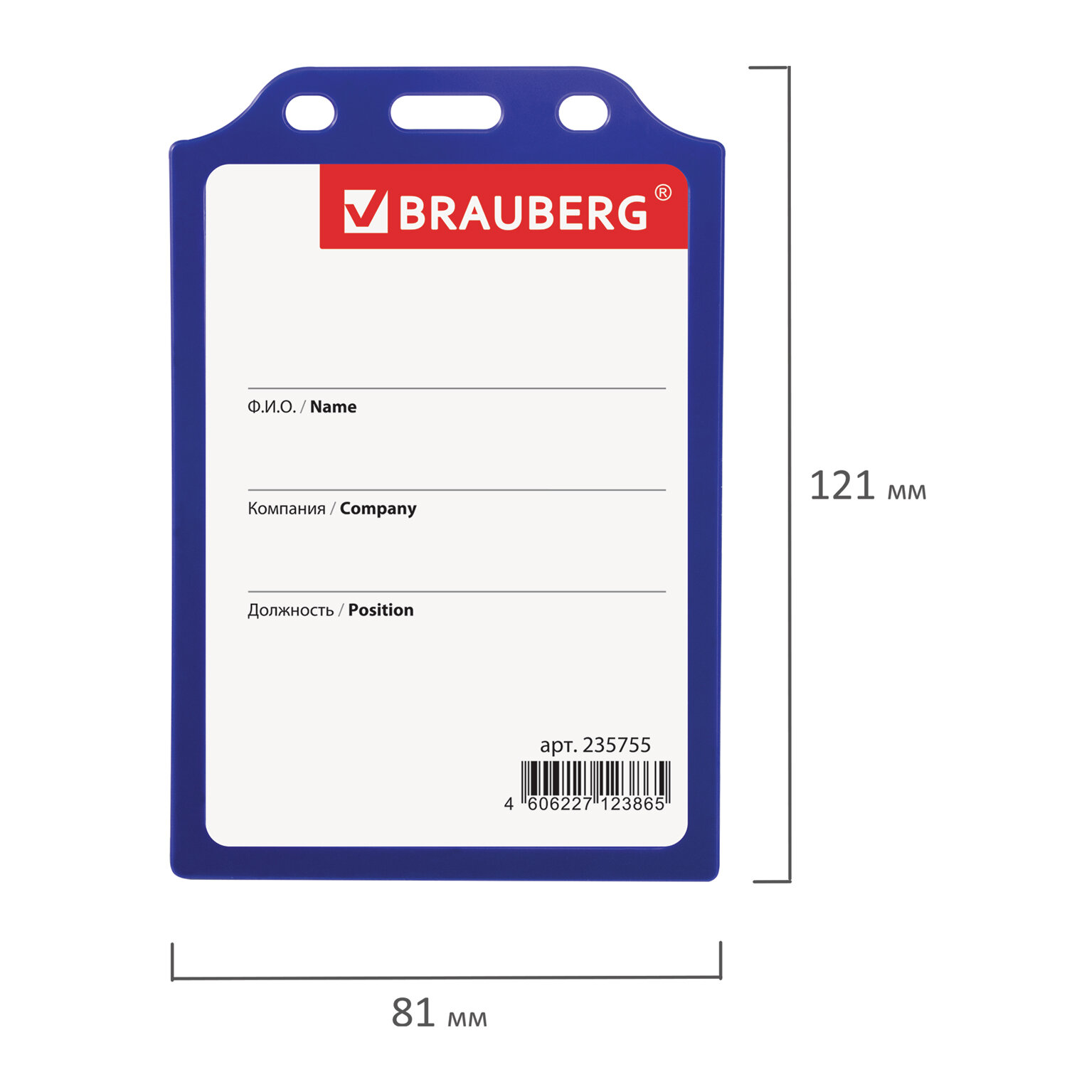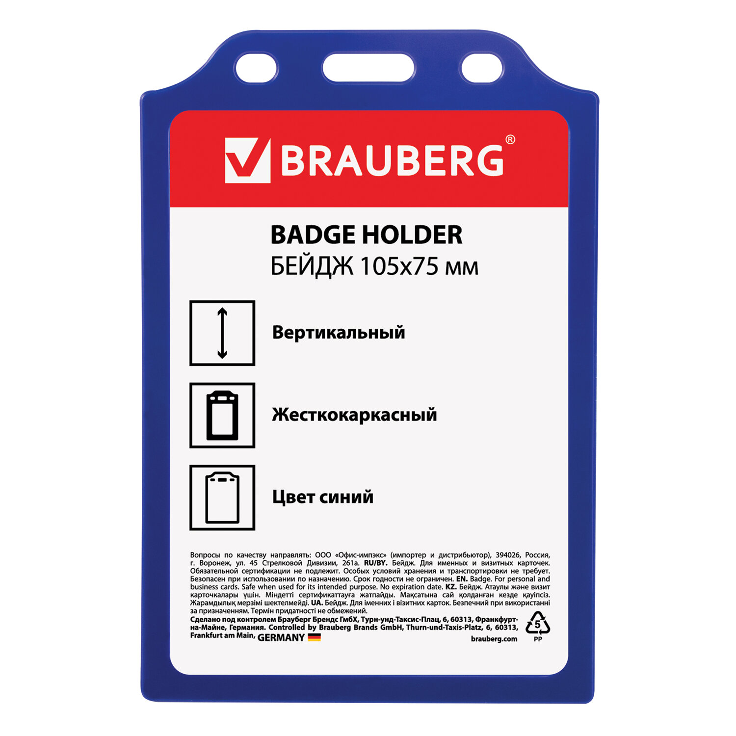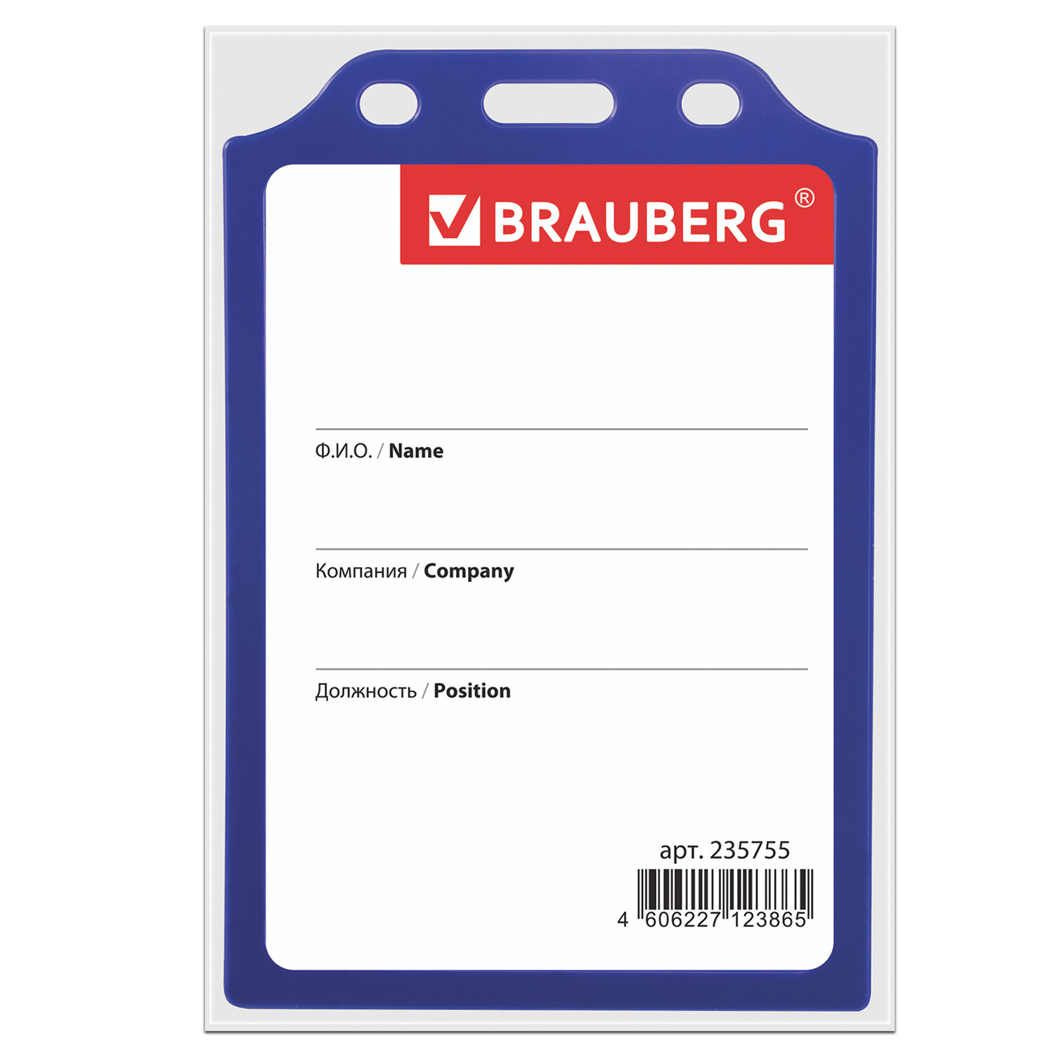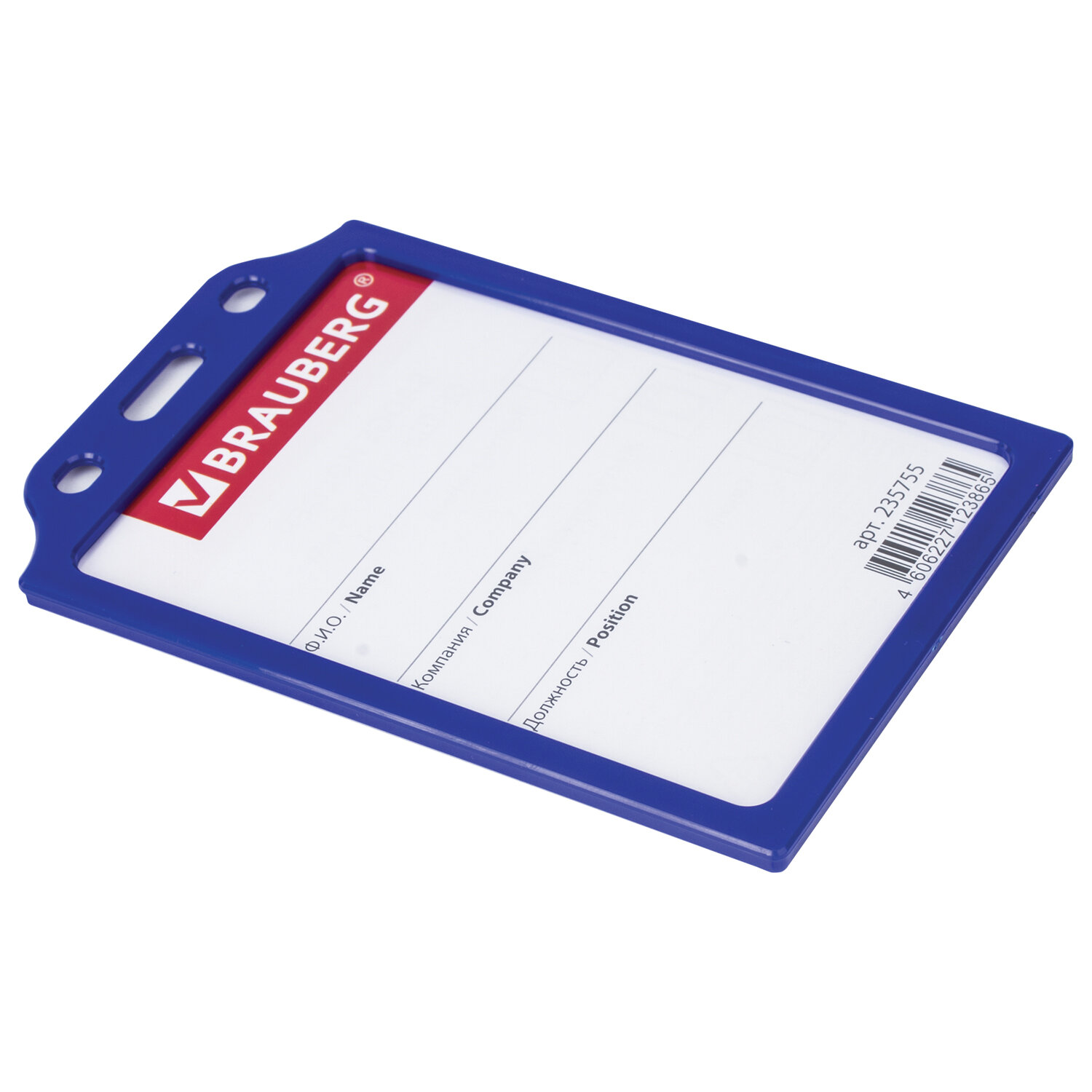 - Бейдж вертикальный жесткокаркасный (105х75 мм), без держателя, СИНИЙ, BRAUBERG, 235755