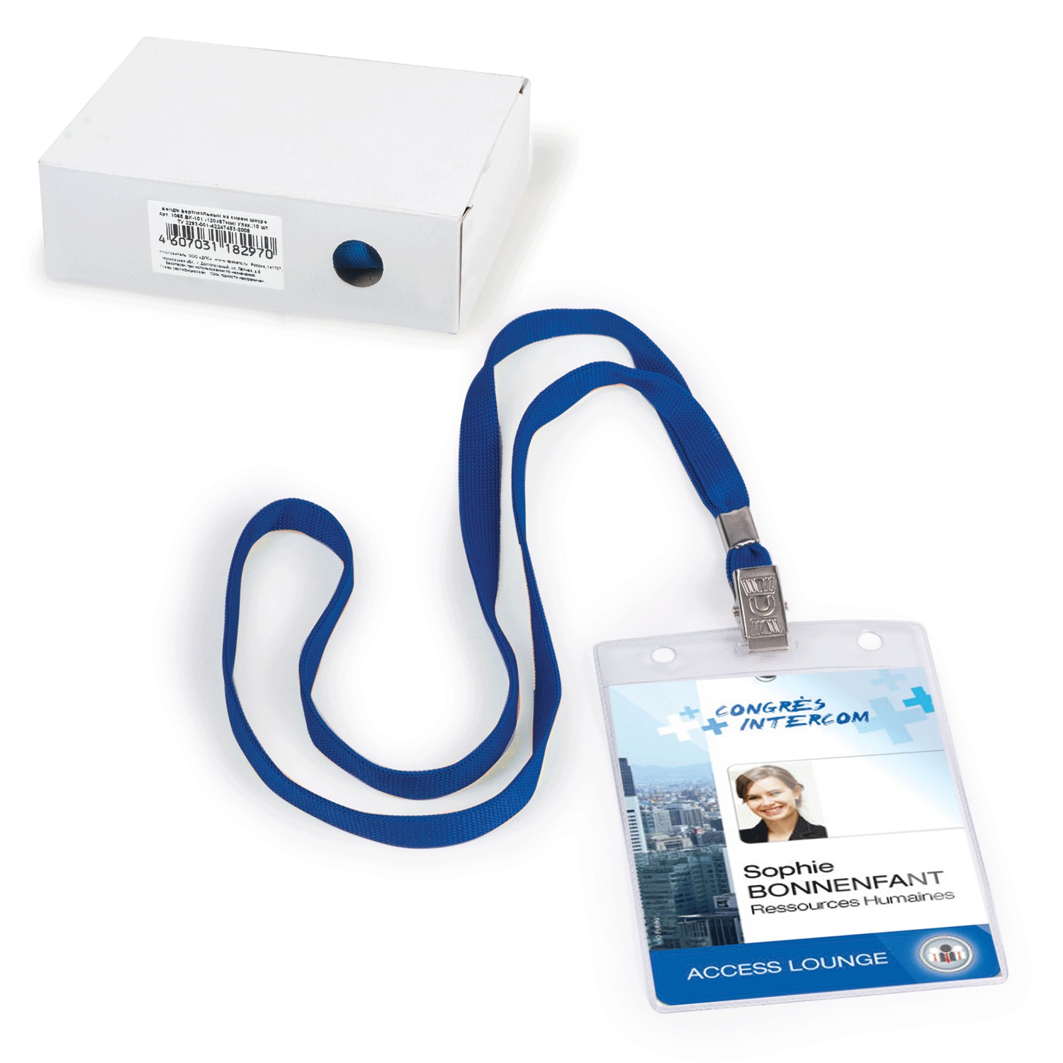 Вертикальный бейдж на синей ленте. Бейджи вертикальные БОЛЬШИЕ (120x87 мм), КОМПЛЕКТ 10 шт., на синей ленте 45 см, ДПС, 1065.ВК-101