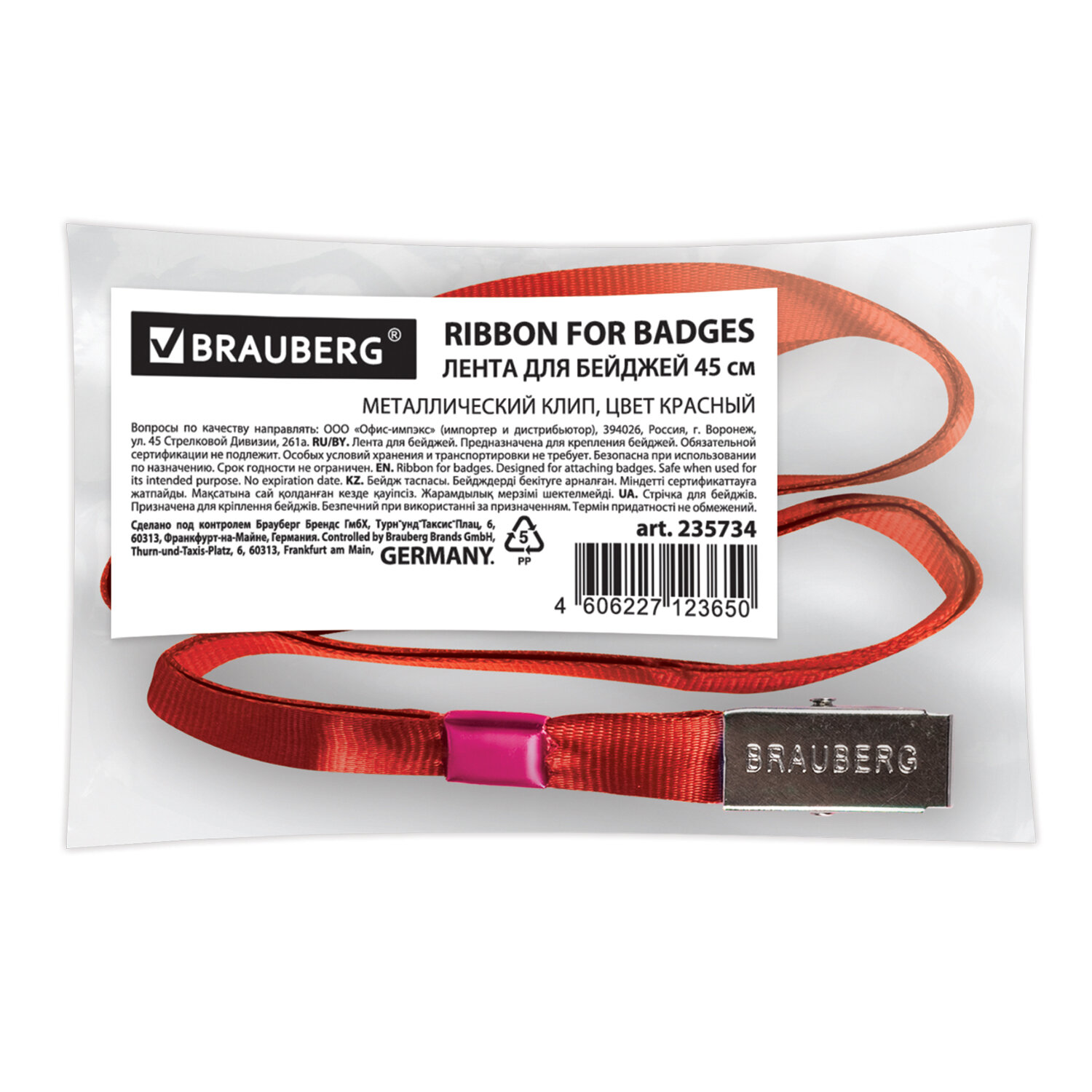 - Лента для бейджей, 45 см, металлический клип, КРАСНАЯ, BRAUBERG, 235734
