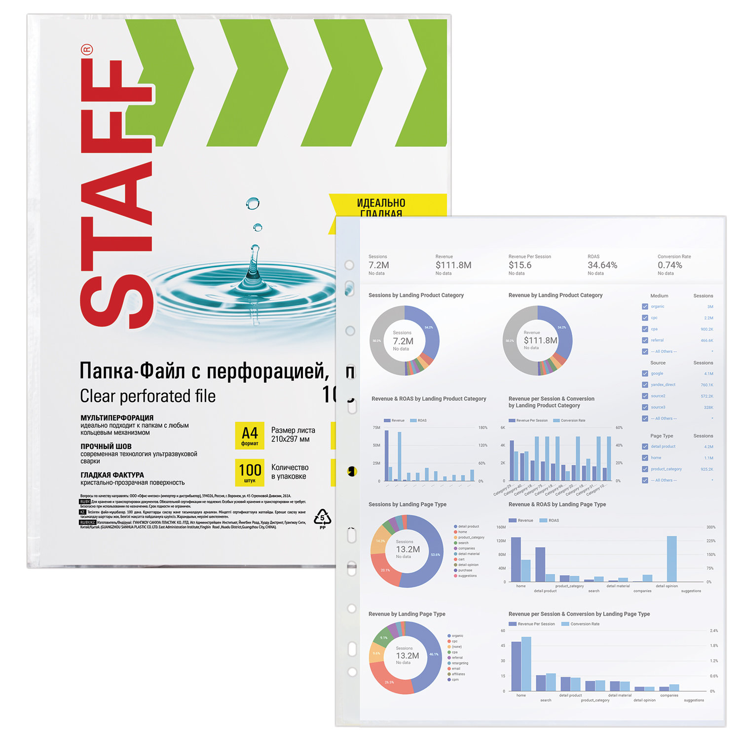 - Папки-файлы перфорированные А4 STAFF "ЭКОНОМ", КОМПЛЕКТ 100 шт., гладкие, 25 мкм, 228504