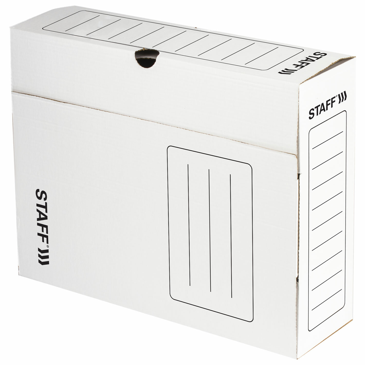 - Короб архивный с клапаном А4 (260х325 мм), 100 мм, до 900 листов, микрогофрокартон, БЕЛЫЙ, STAFF, 128863