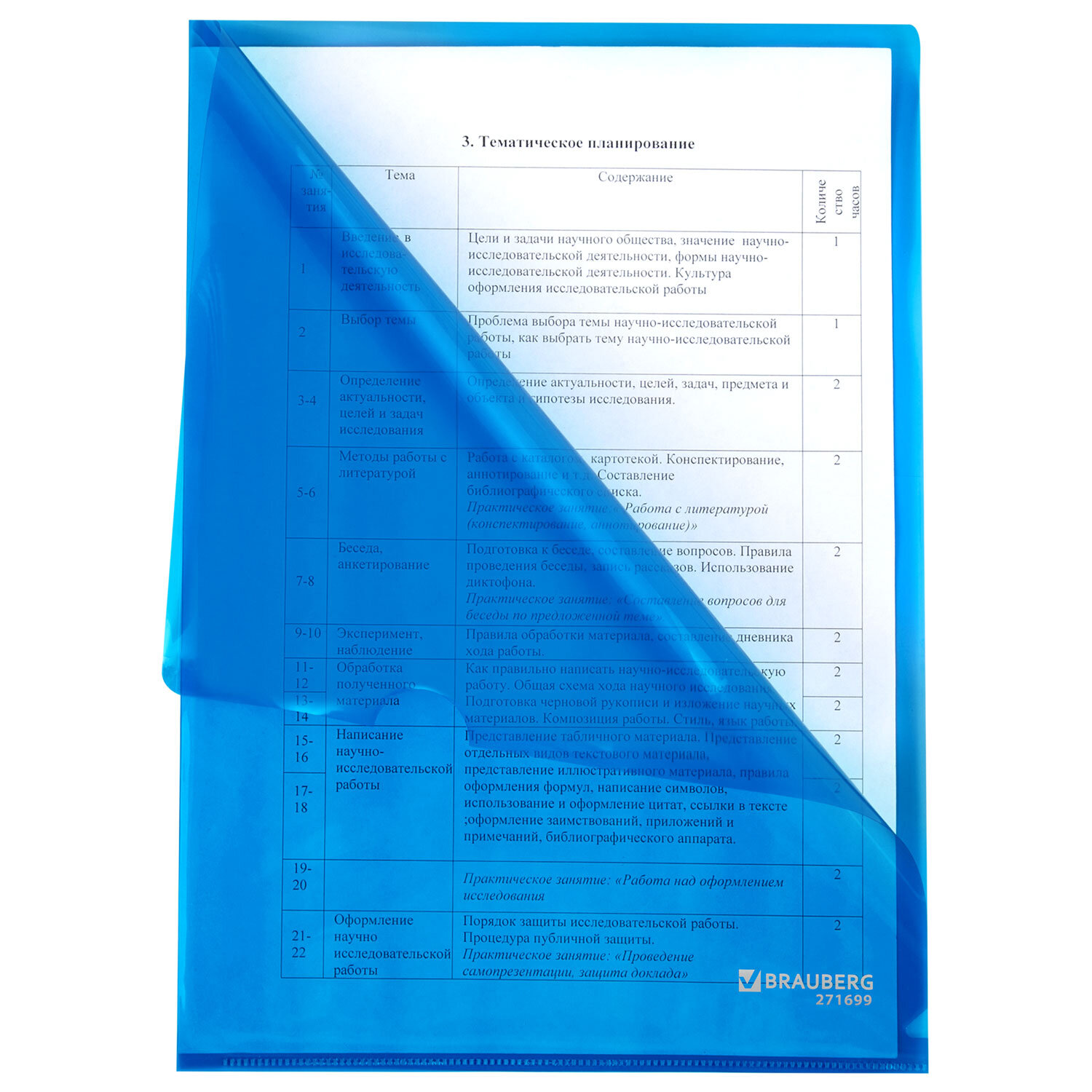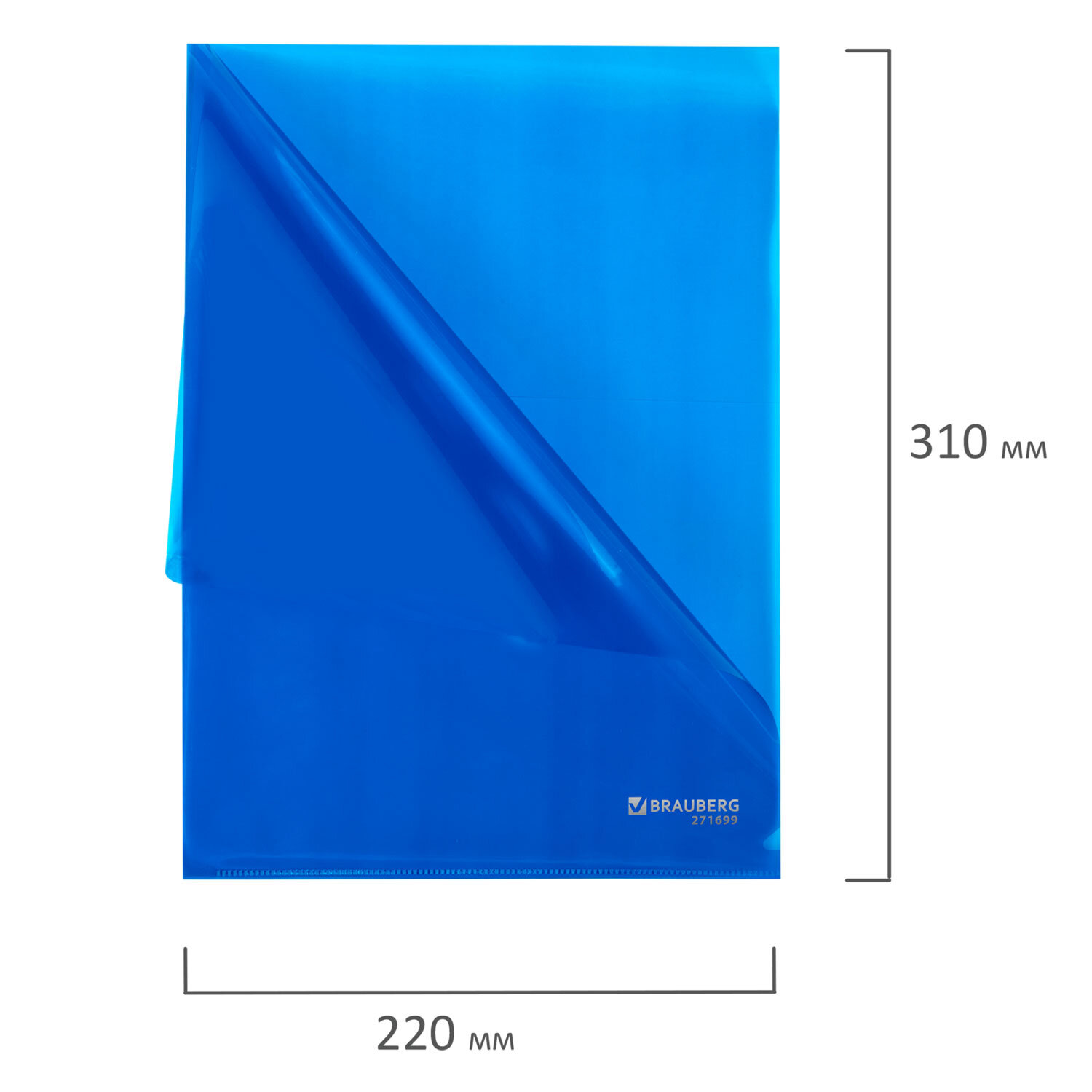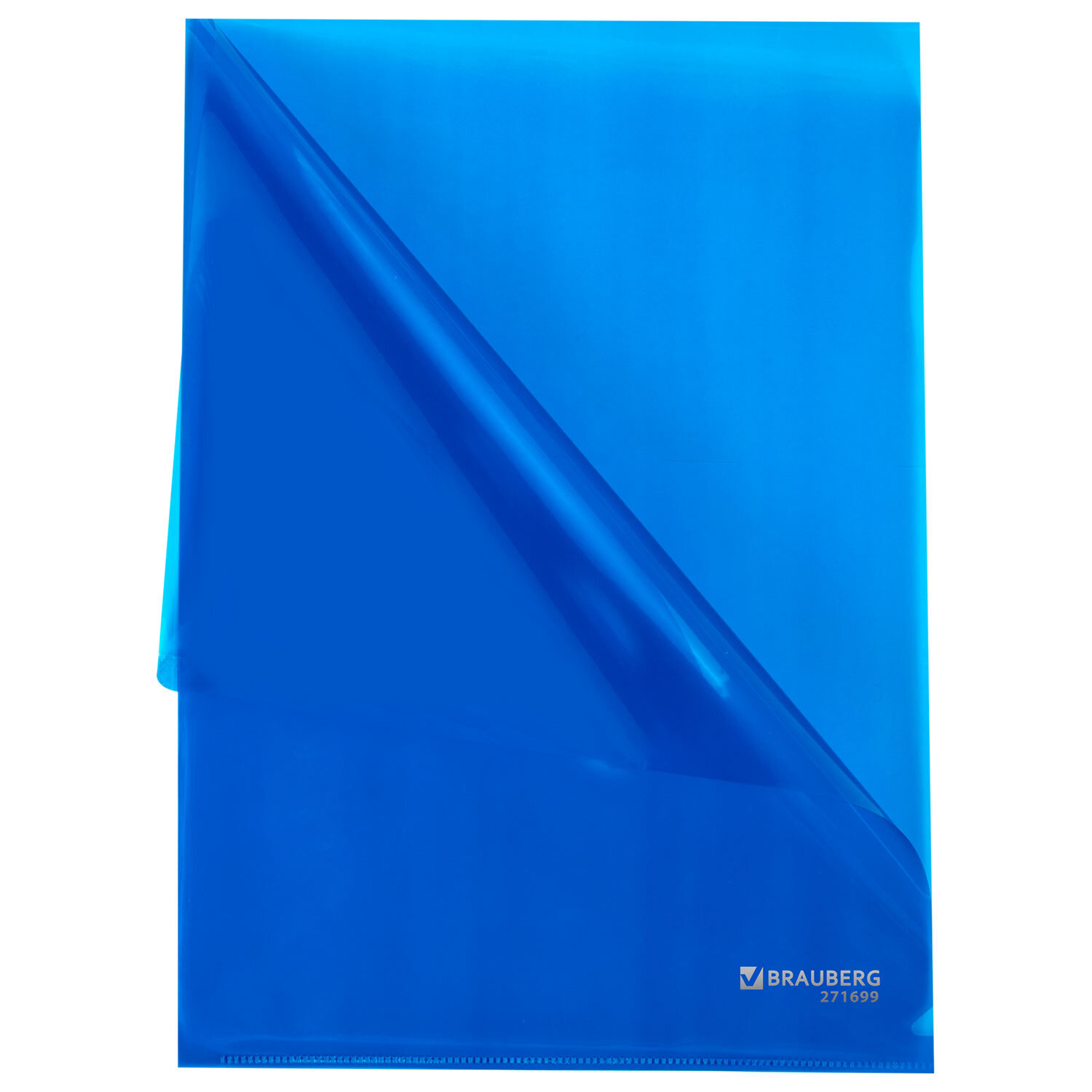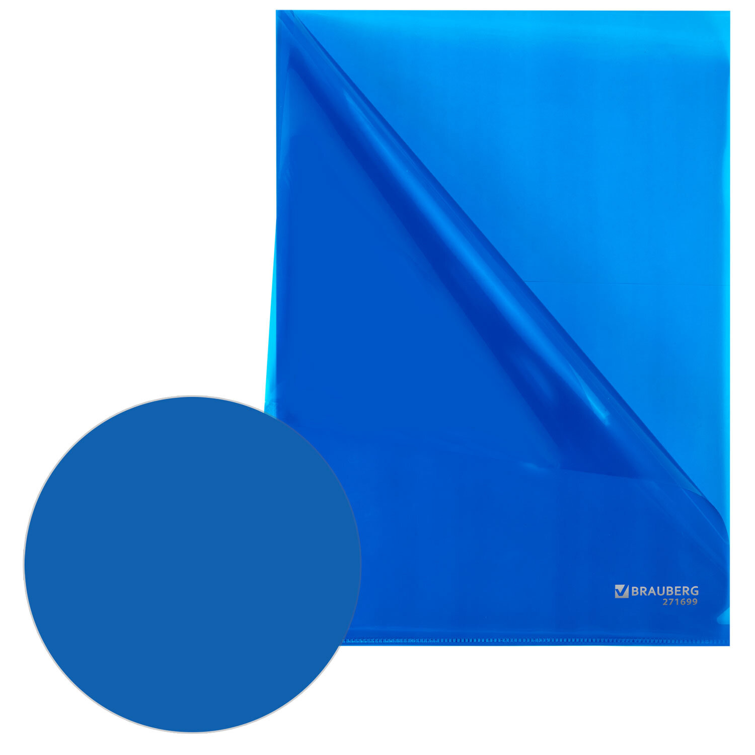 - Папка-уголок А4, синяя, 0,10 мм, BRAUBERG EXTRA, 271699