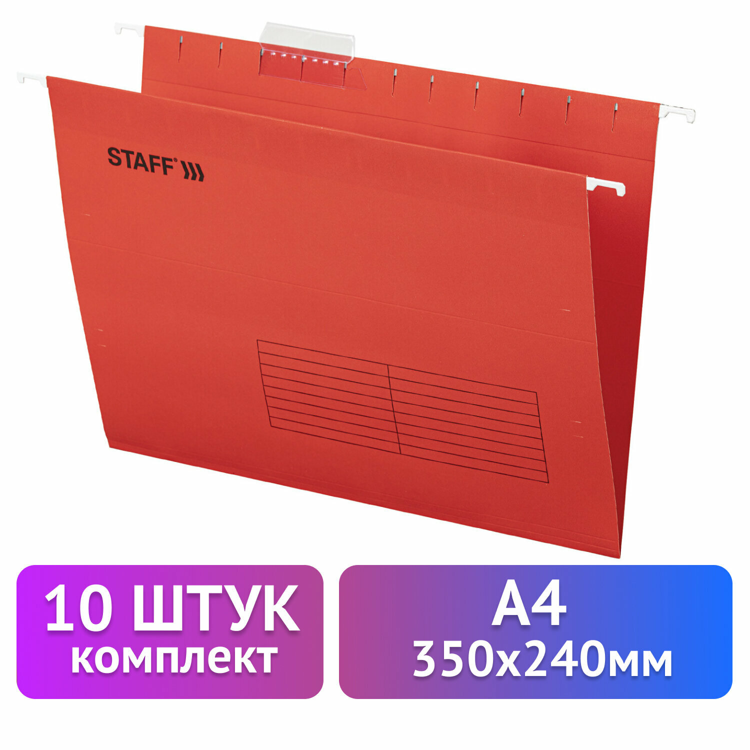 - Подвесные папки А4 (350х240 мм) до 80 л., КОМПЛЕКТ 10 шт., красные, картон, STAFF, 270931