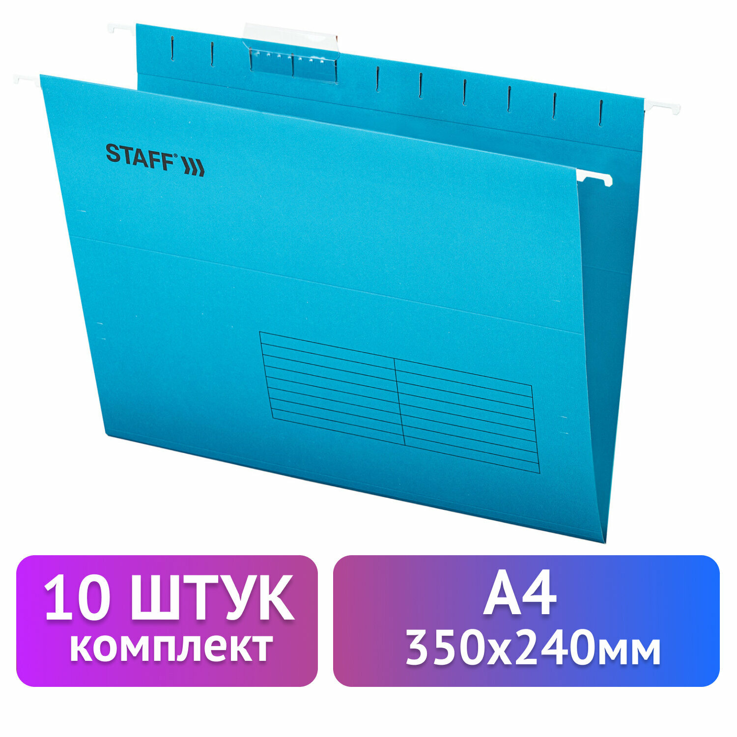 - Подвесные папки А4 (350х240 мм), до 80 л., КОМПЛЕКТ 10 шт., синие, картон, STAFF, 270928