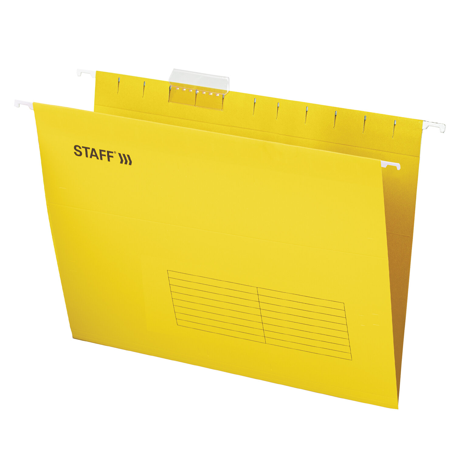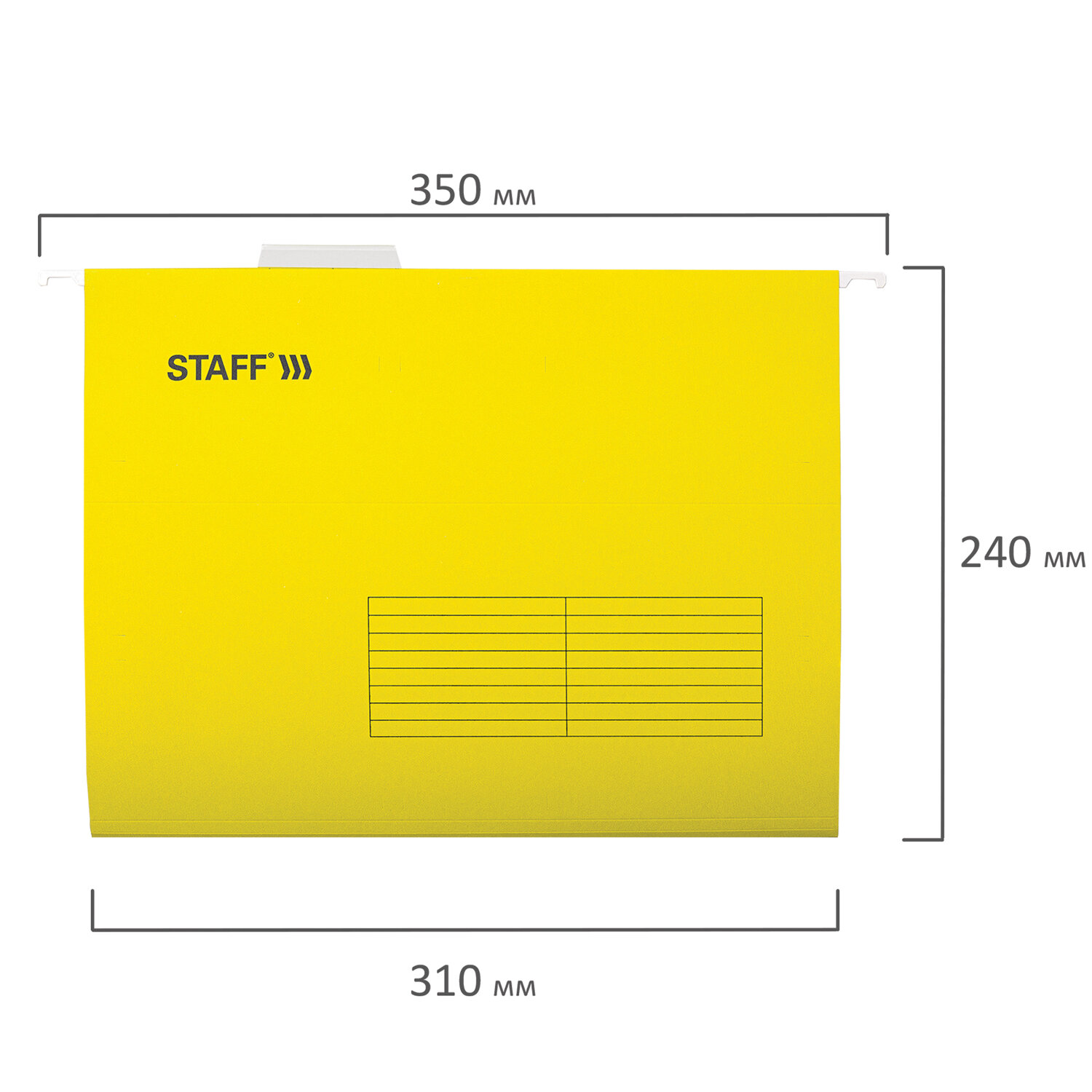 Папки V-образной формы изготовлены из высококачественного картона желтого цвета плотностью 195 г/м2 и металлических крючков. Обладают повышенной прочностью. Вместимость до 80 листов. Размер папки без крючков составляет 310х240 мм, а с крючками - 350х240 мм. В комплект входят 10 папок, а также 10 прозрачных пластиковых табуляторов с ярлычками. Подвесные папки А4 (350х240 мм) до 80 л., КОМПЛЕКТ 10 шт., желтые, картон, STAFF, 270930
