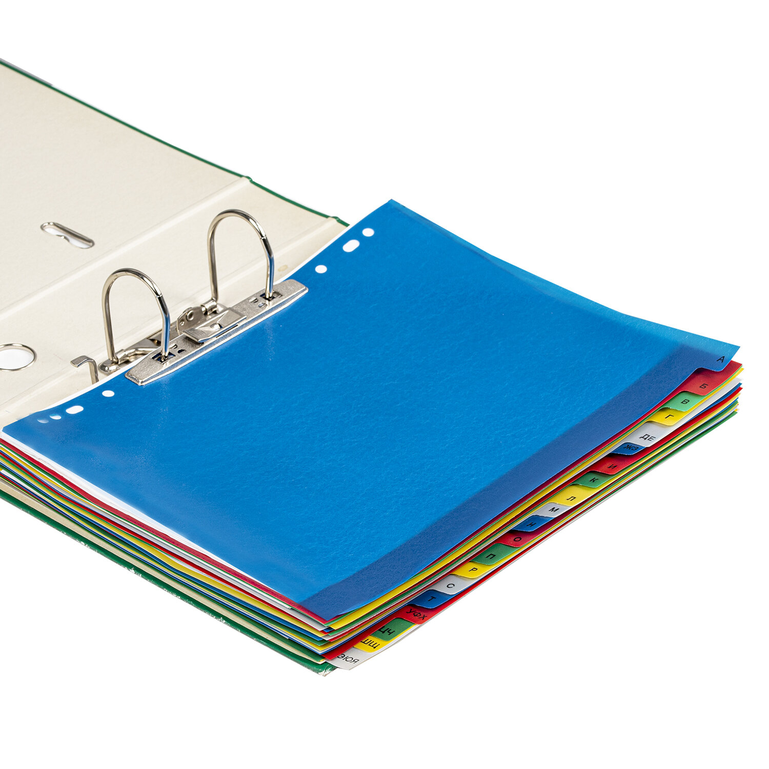 Изготовлены из пластика толщиной 0,12 мм. В комплект входят 20 листов синего, красного, серого, зеленого и желтого цвета, обеспечивающих возможность сортировки документов по алфавиту, а также титульный лист для оглавления. Универсальная перфорация позволяет подшивать разделители во все типы папок. Размер - 246х305 мм. Разделитель пластиковый широкий BRAUBERG А4+, 20 листов, алфавитный А-Я, оглавление, цветной, 225627