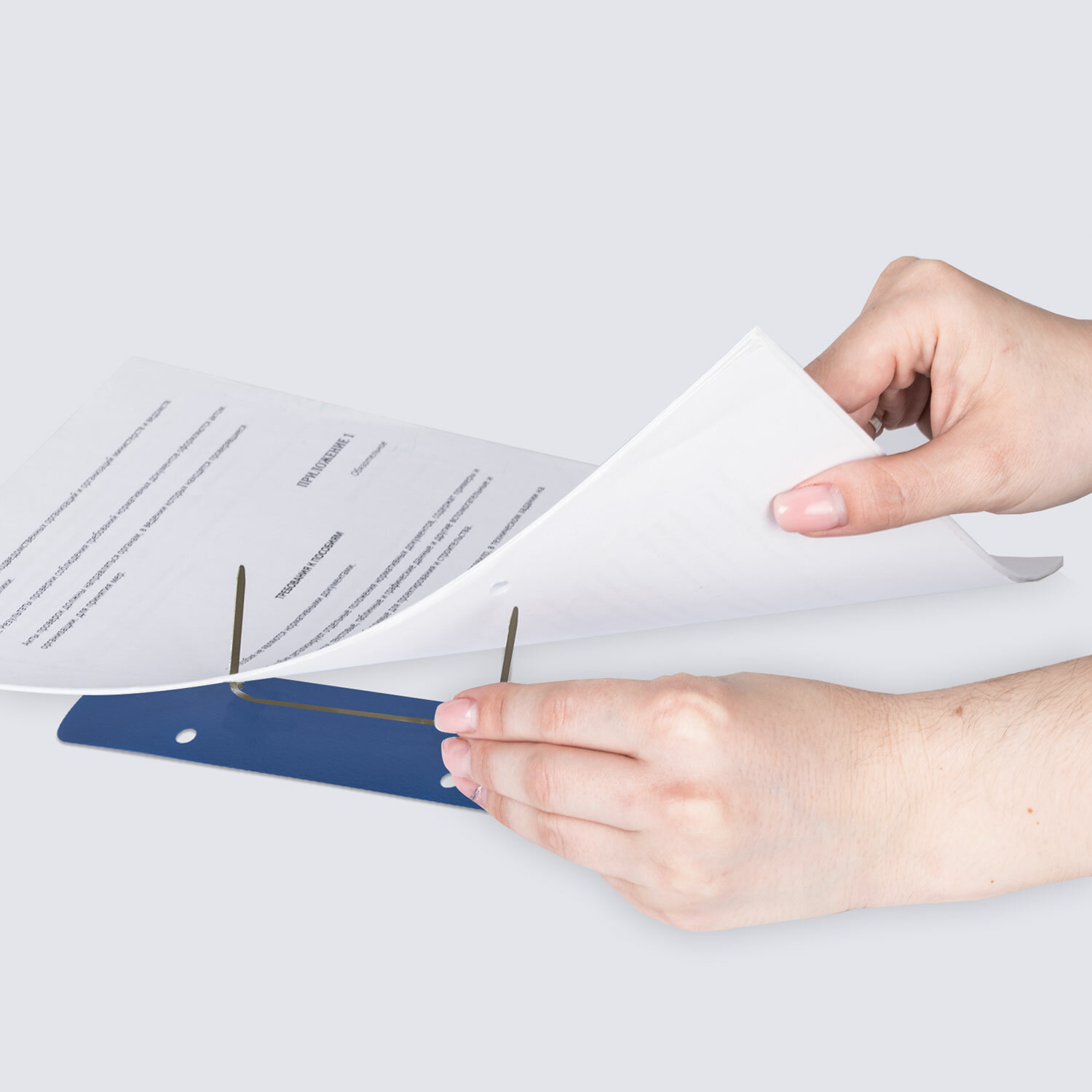 В комплект входит 50 штук. Механизм размером 160х36 мм состоит из металлопластика синего цвета. Длина ножек - 35 мм, а расстояние между отверстиями составляет 80 мм. Вмещает до 100 листов. Механизм скоросшиватель полоска до 100 листов, КОМПЛЕКТ 50 шт., металл, 160х35 мм, STAFF, 229824