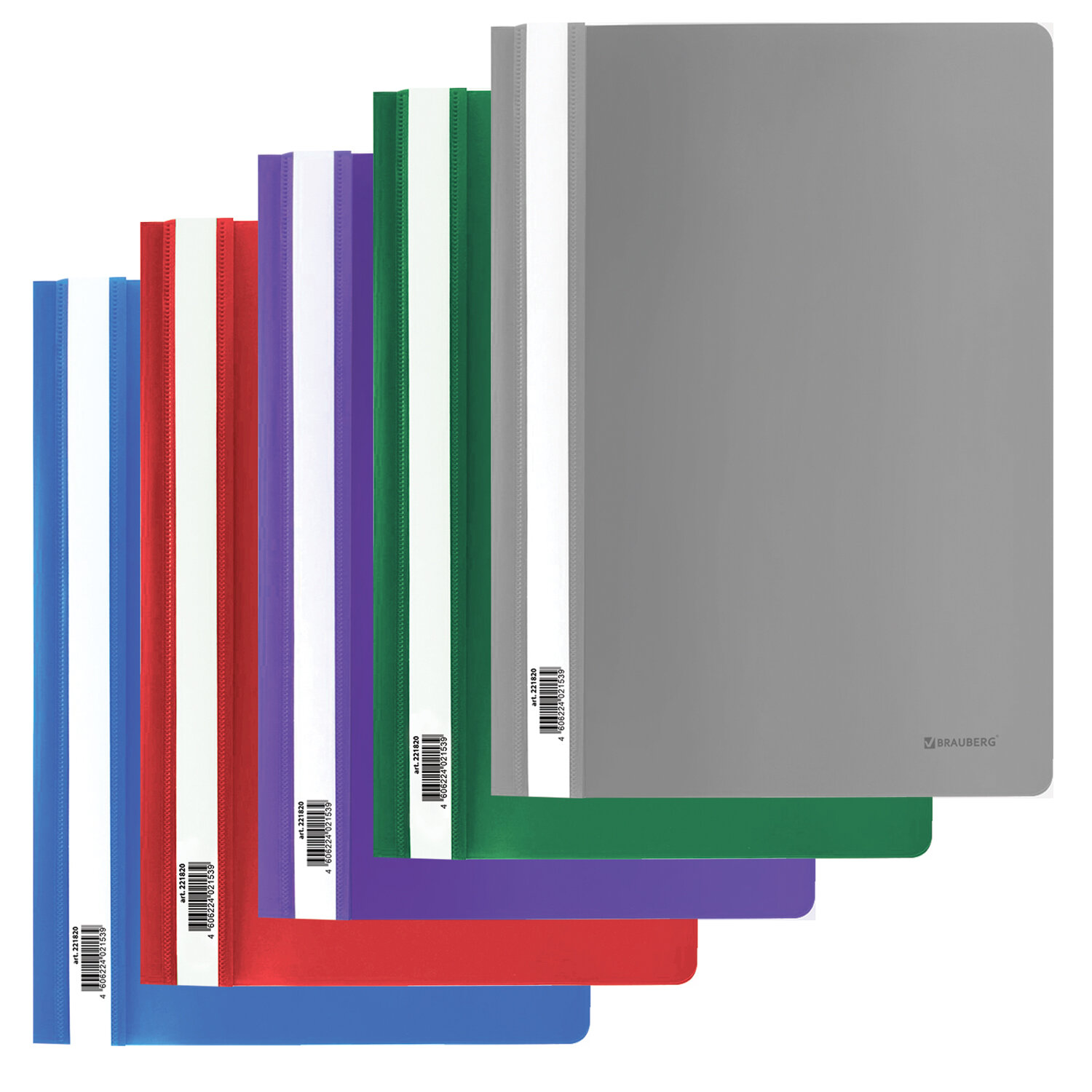 - Скоросшиватель пластиковый BRAUBERG, А4, 130/180 мкм, ассорти, 221820