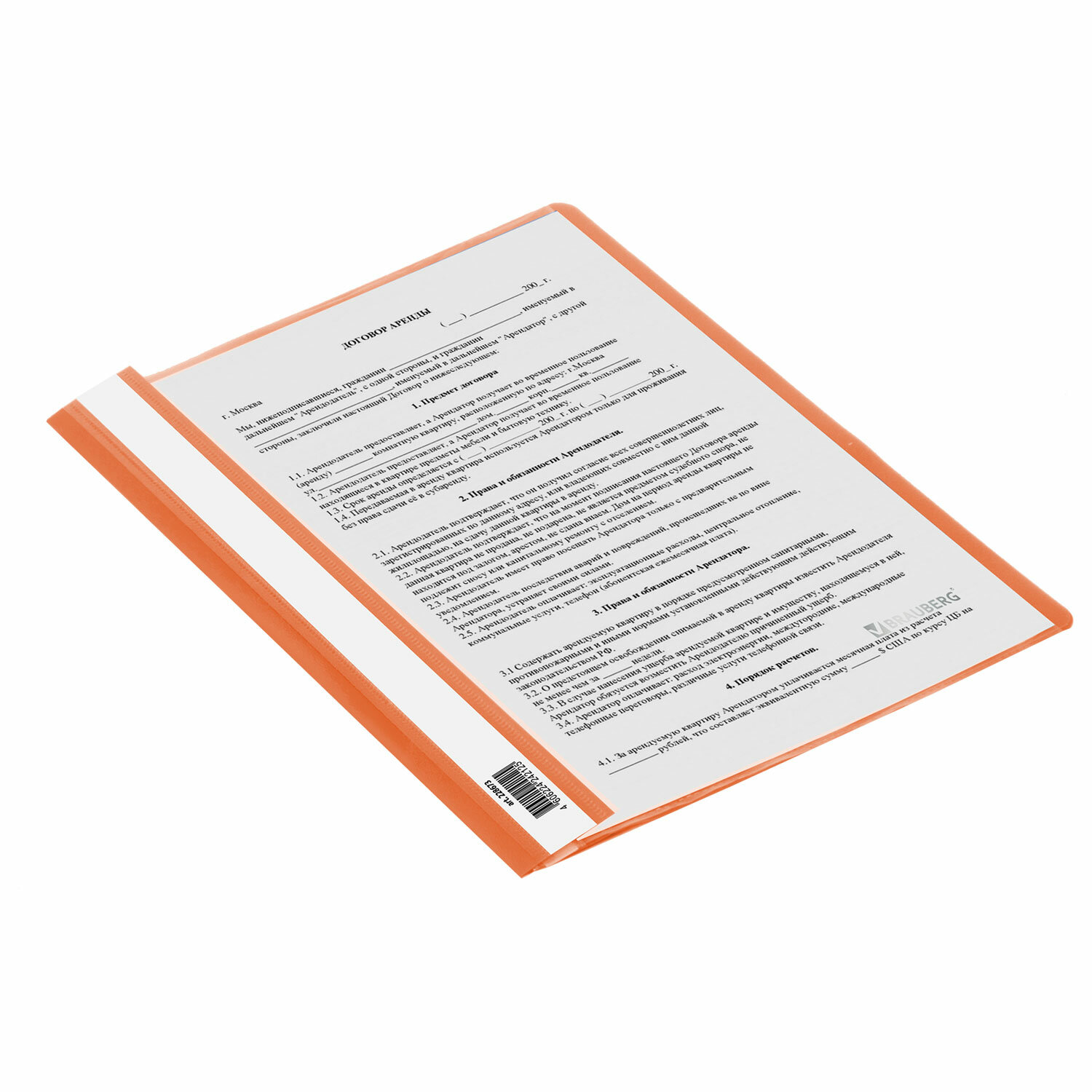 - Скоросшиватель пластиковый BRAUBERG, А4, 130/180 мкм, оранжевый, 228673