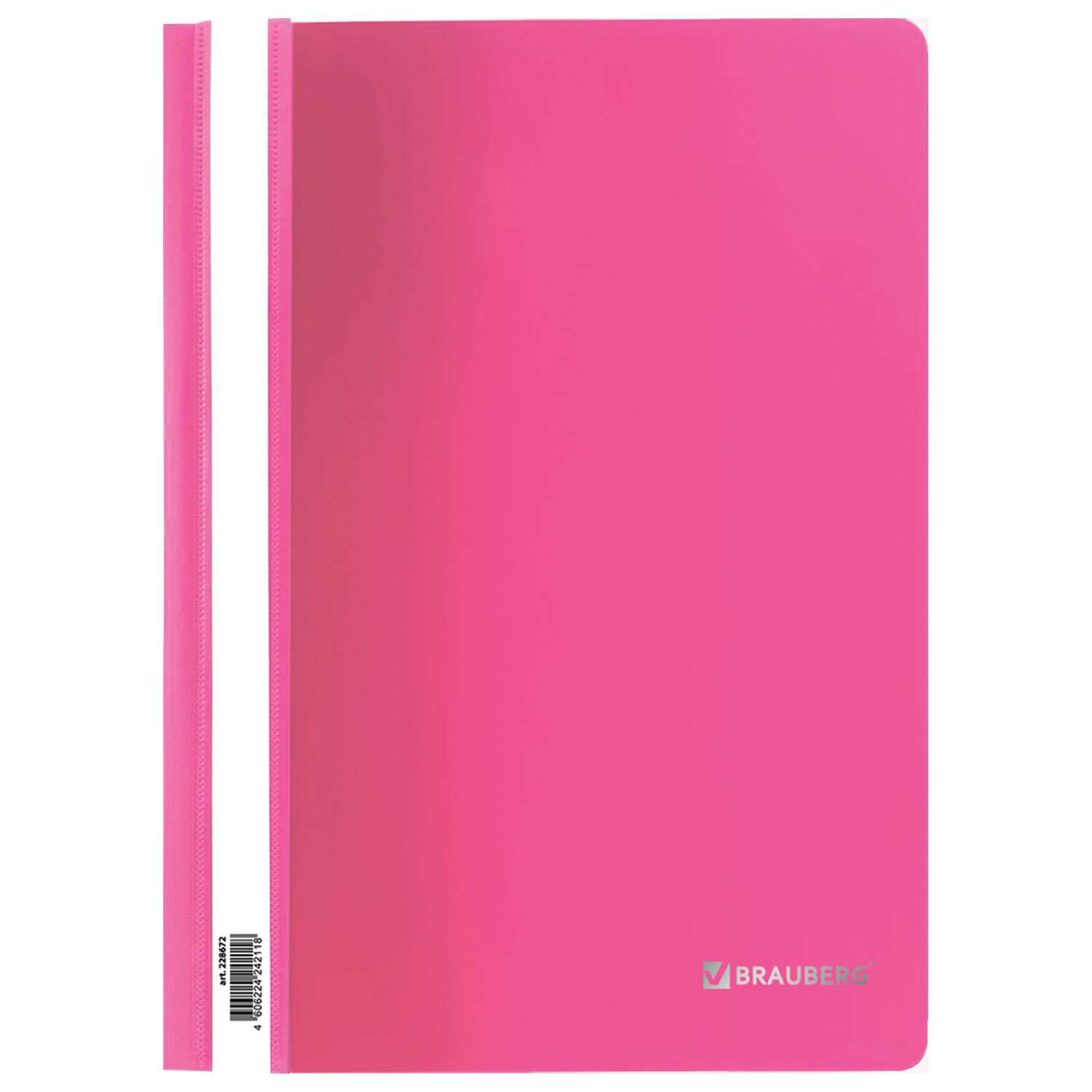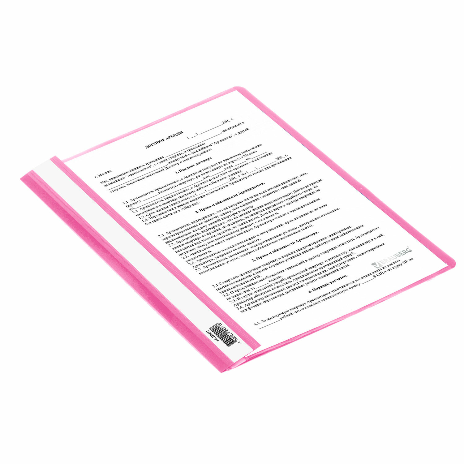 Скоросшиватель пластиковый BRAUBERG, А4, 130/180 мкм, розовый, 228672