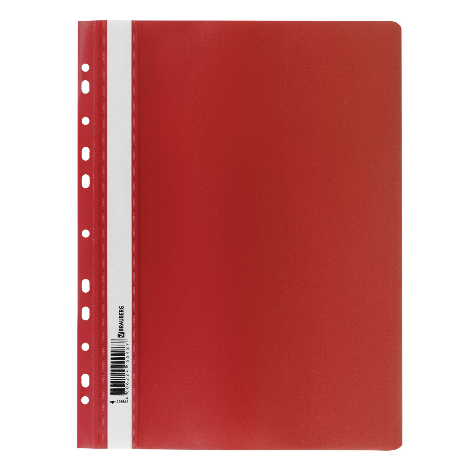 - Скоросшиватель пластиковый с перфорацией BRAUBERG, А4, 140/180 мкм, красный, 226582