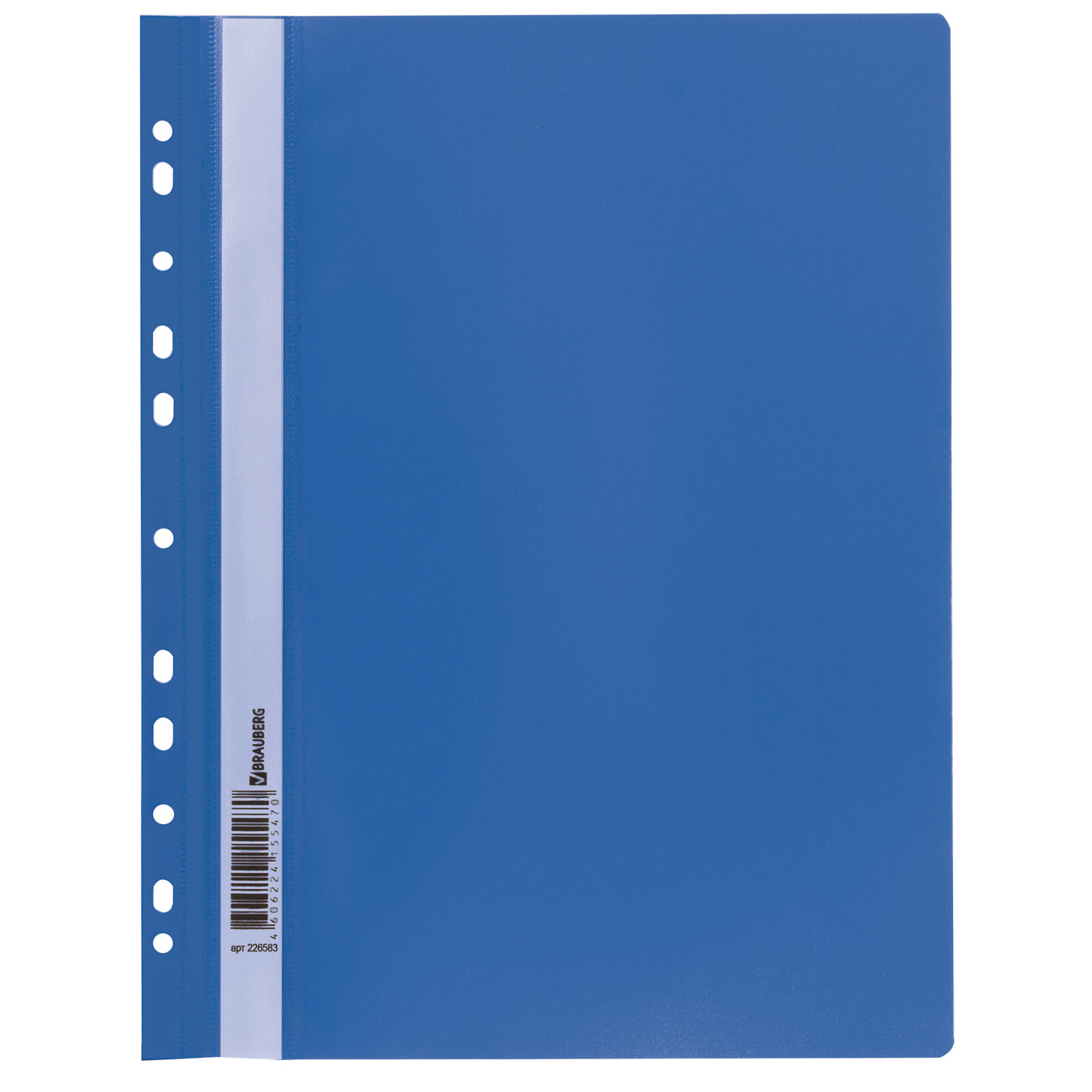 - Скоросшиватель пластиковый с перфорацией BRAUBERG, А4, 140/180 мкм, синий, 226583